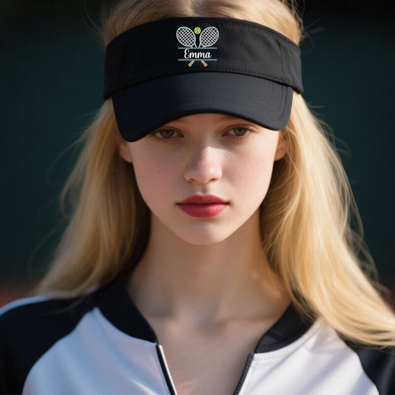 Personalized Tennis Hat Visor Custom Tennis Racket and Name Design Gift for Sports Lover