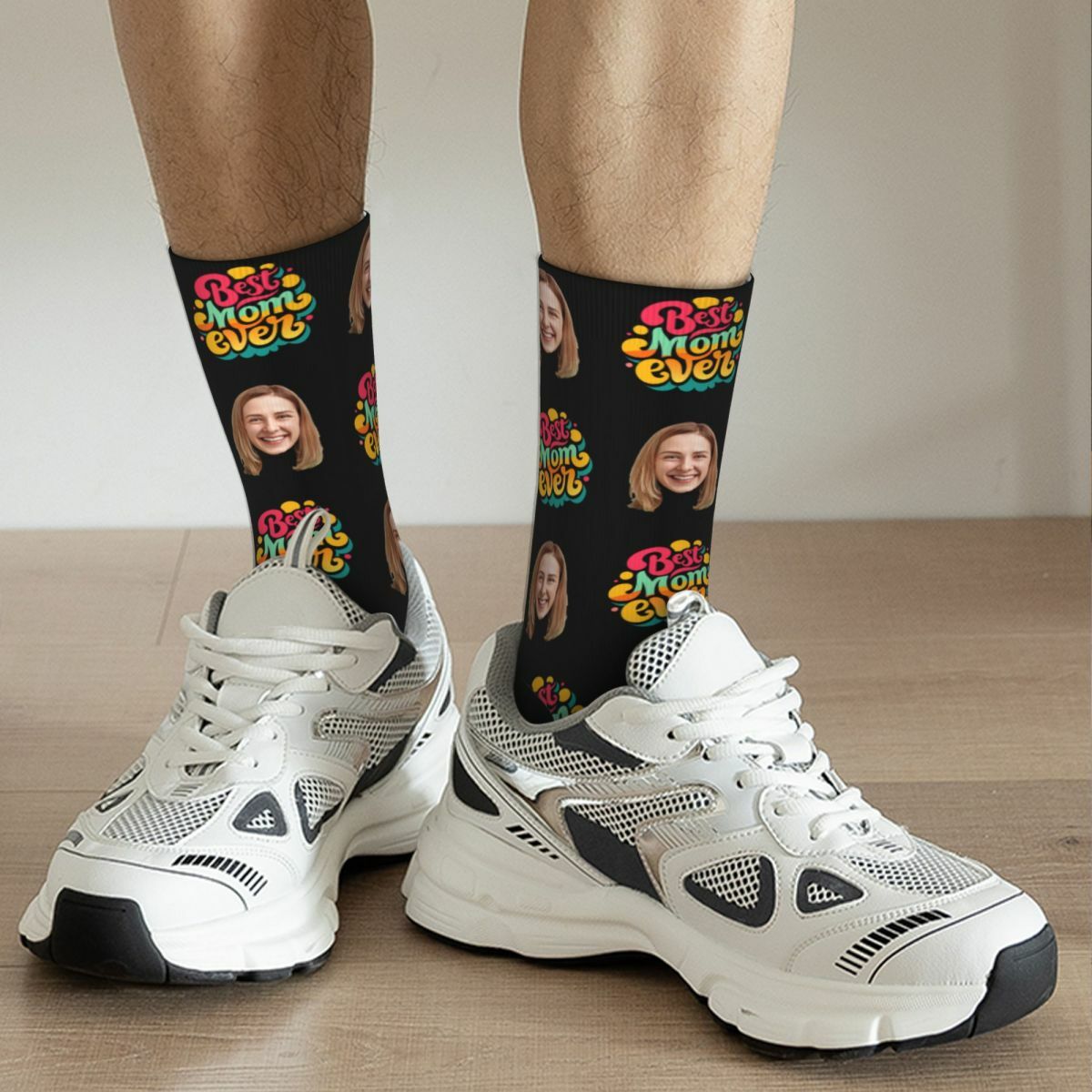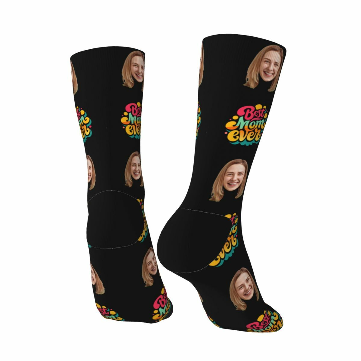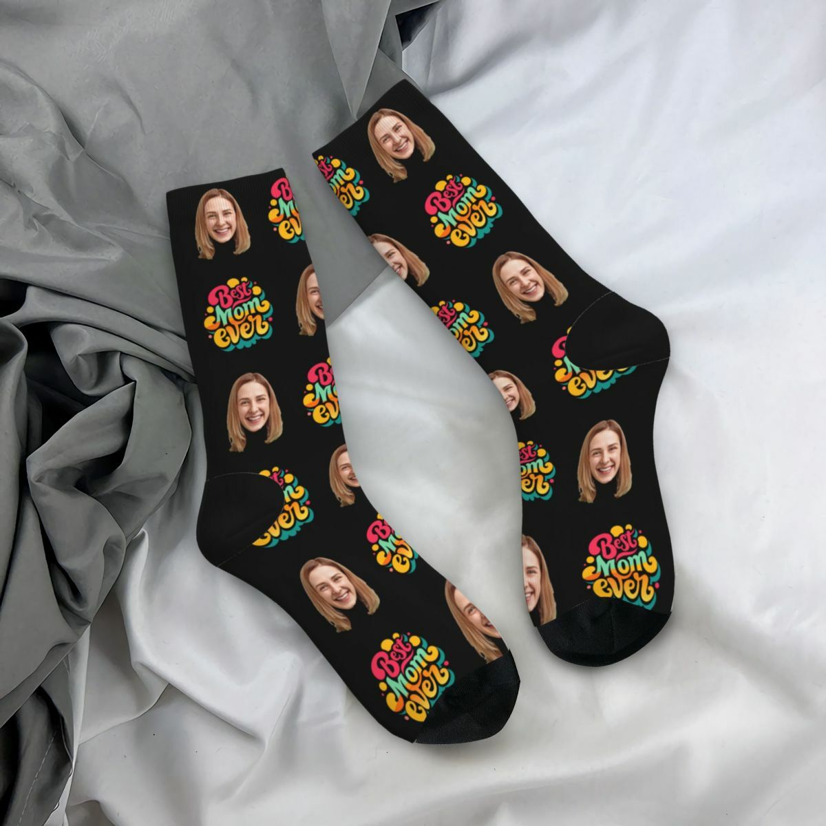 "BEST MOM EVER" Personalized Face Socks Birthday Gift for Mom