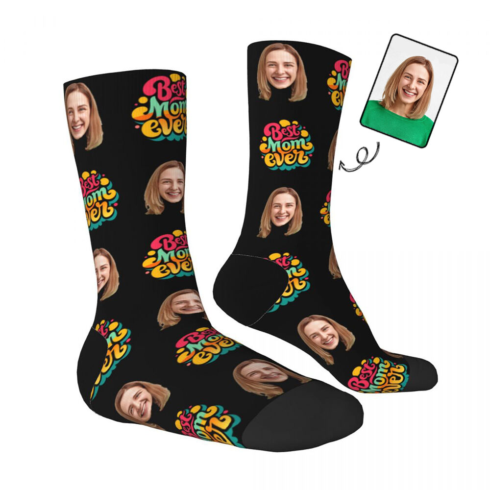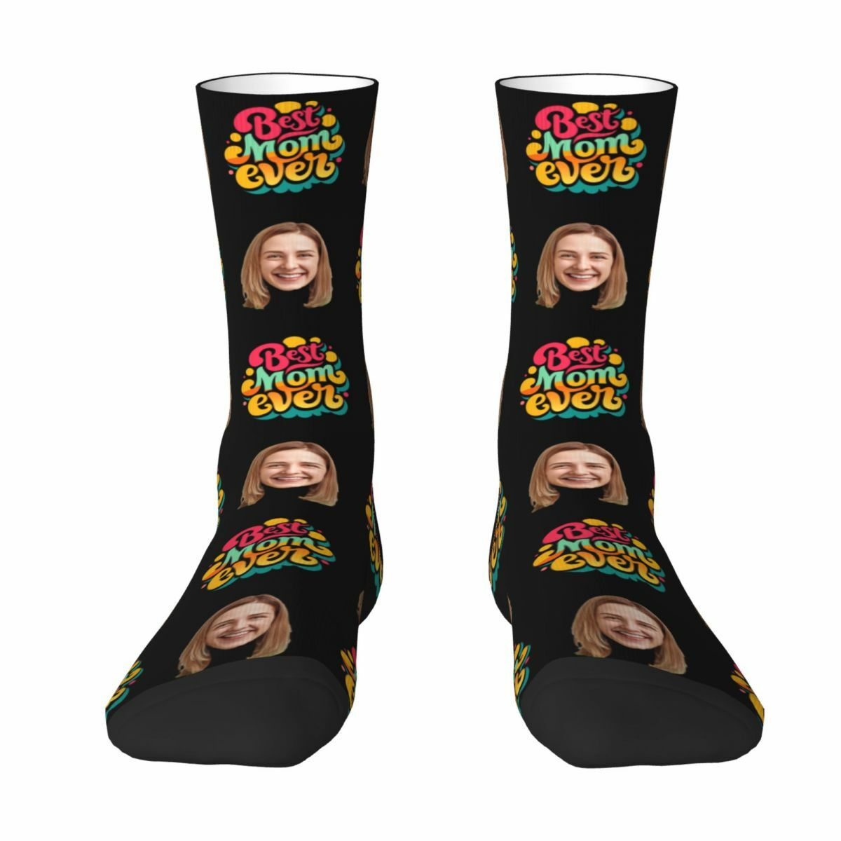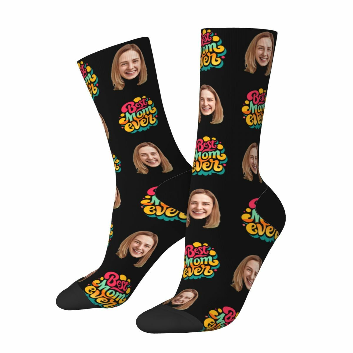 "BEST MOM EVER" Personalized Face Socks Birthday Gift for Mom