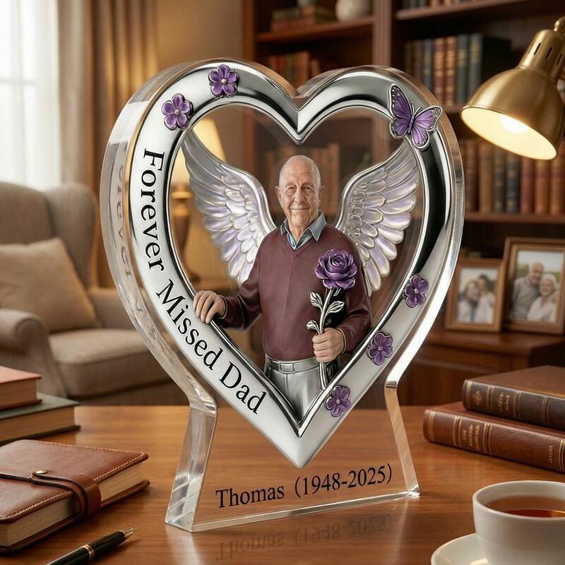Custom Acrylic Plaque Heart-Shaped Angel Wings Photo Keepsake Sympathy Gift for Grieving Family