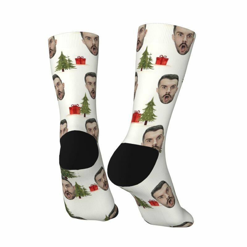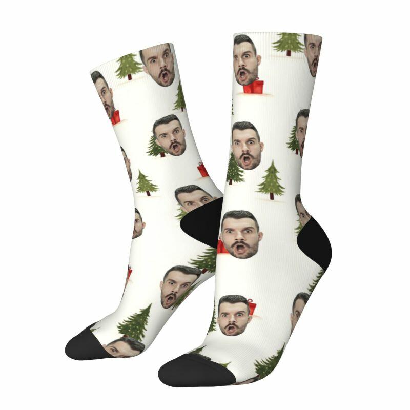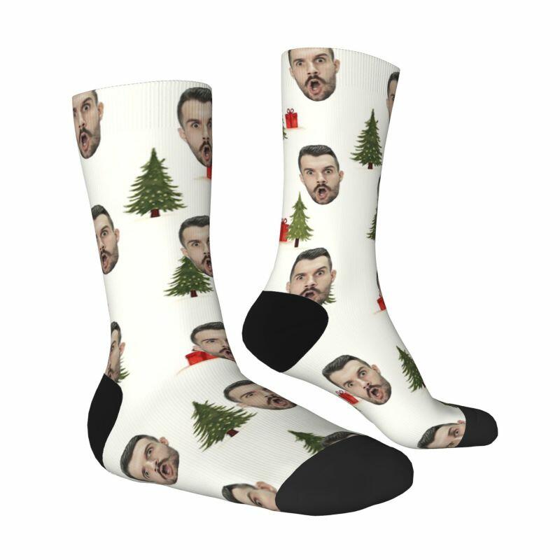 Custom Face Socks with Christmas Tree Pattern Add Photo for Christmas Gifts