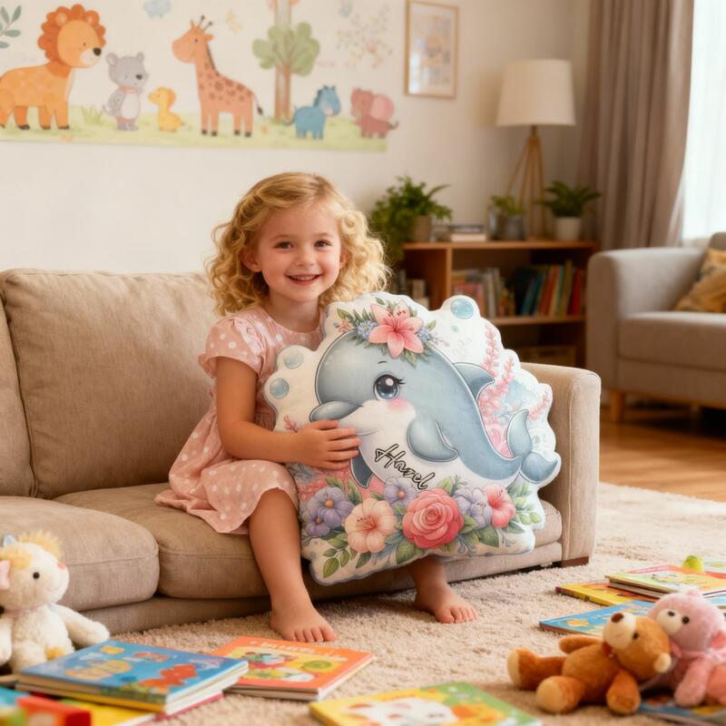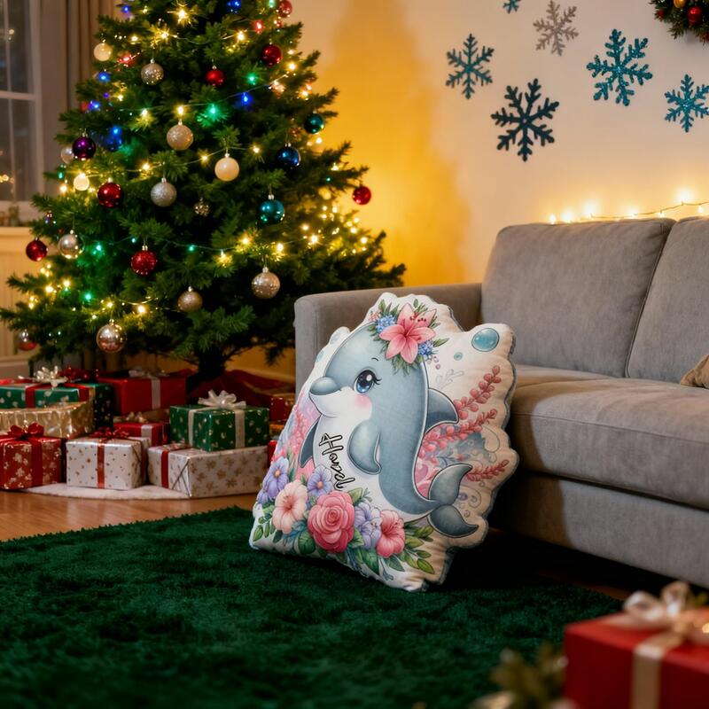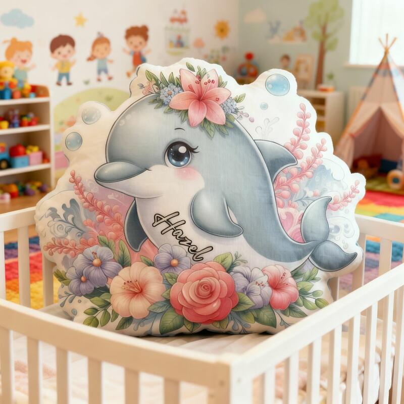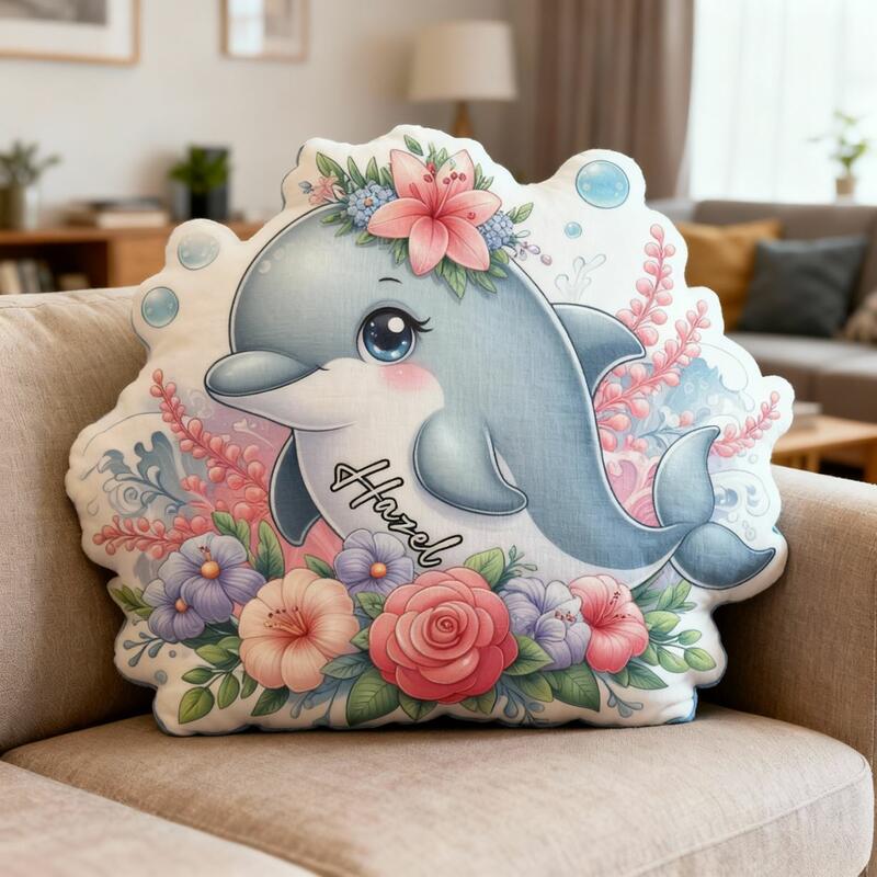 Custom Floral Dolphin Pillow Cartoon Dolphin Print Cushion Cute Home Decor for Kids
