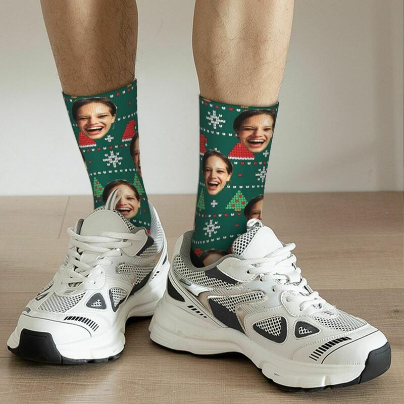 Add a touch of fun and whimsy to your holiday wardrobe or surprise your loved ones with a gift that’s both practical and festive. Spread the holiday spirit with our custom face socks and make this Christmas season extra special for you and those around you.