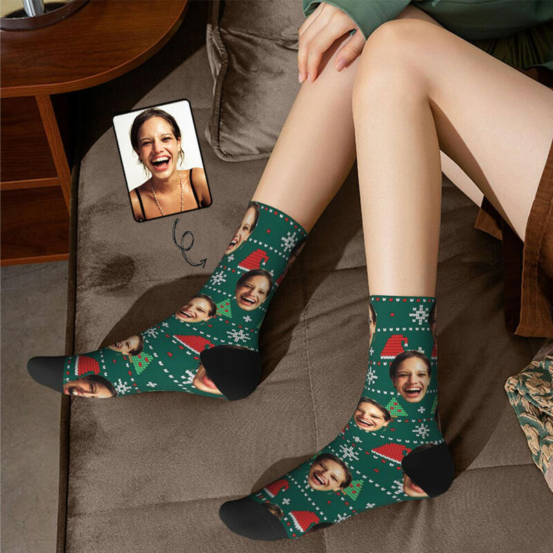 Customized Face Socks Add Photo Mid-Calf Socks for Christmas