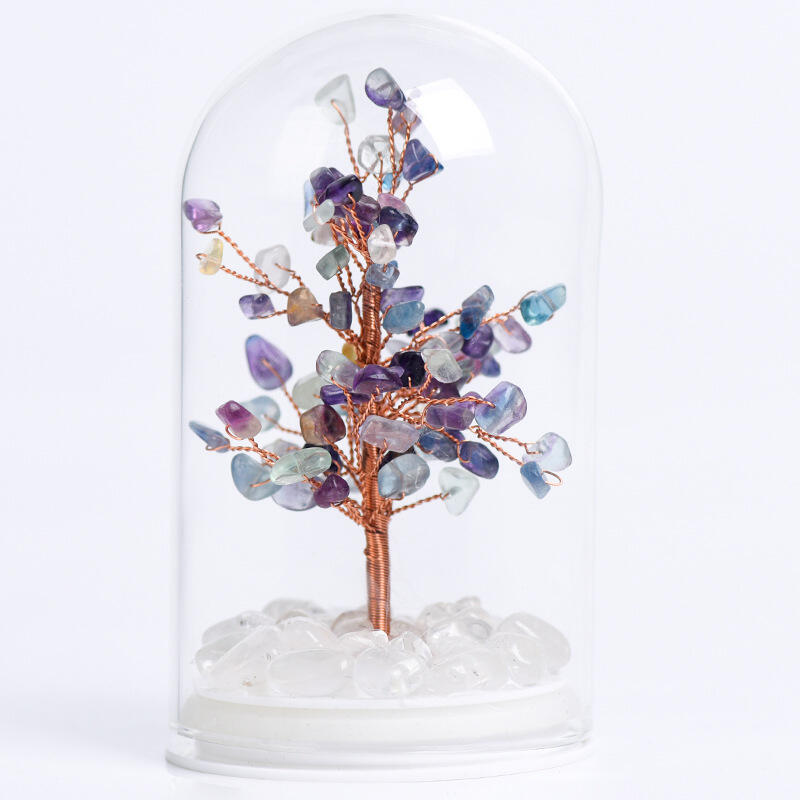 Each tree is meticulously handcrafted from pure, natural crystal crushed stone, creating a one-of-a-kind masterpiece. The carefully selected crystals possess brilliant transparency and vibrant colors, creating a dazzling display that captures and reflects light in the most enchanting way. The structure of the tree features flowing lines, giving it an elegant yet natural look that instantly melts the hearts of all who see it.