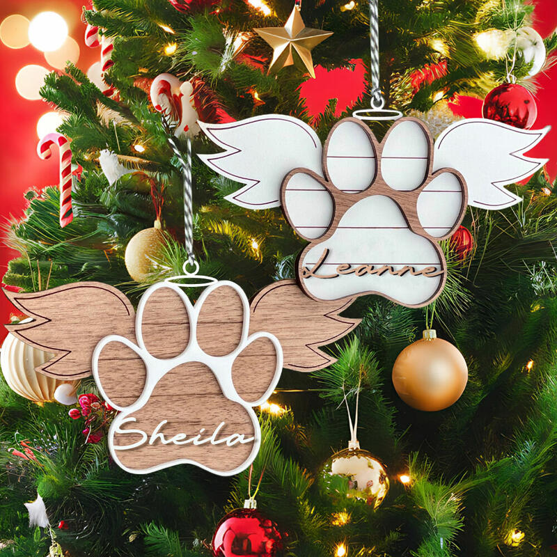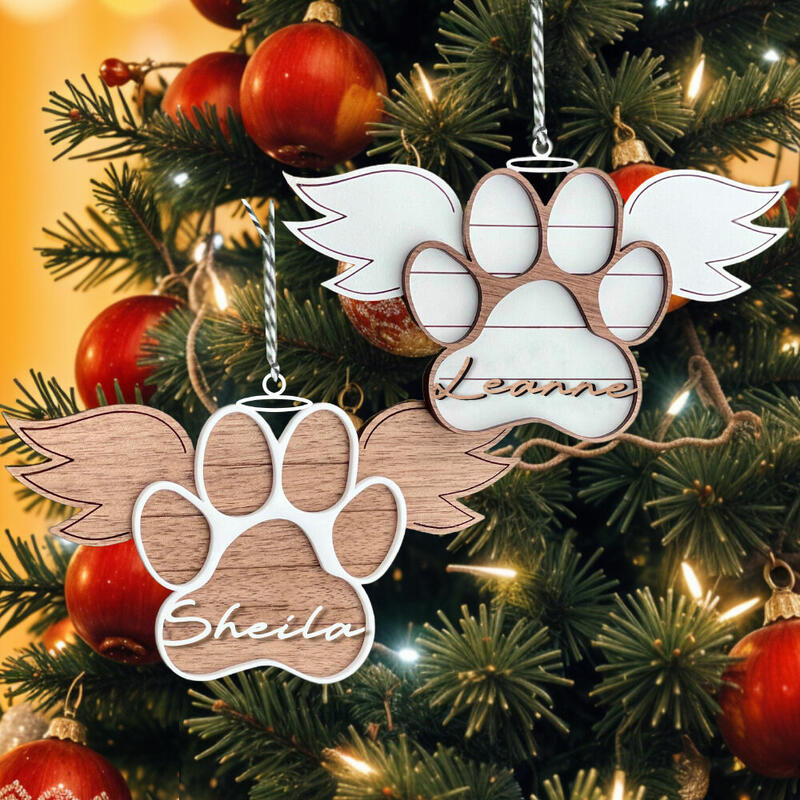 Personalised Christmas Tree Ornament Pet Memorial Ornament with Paw Print and Wings for Xmas