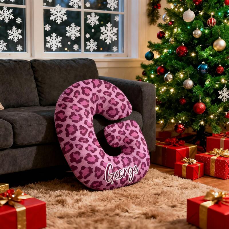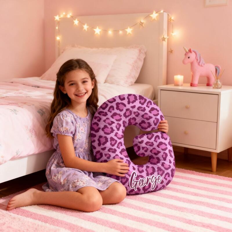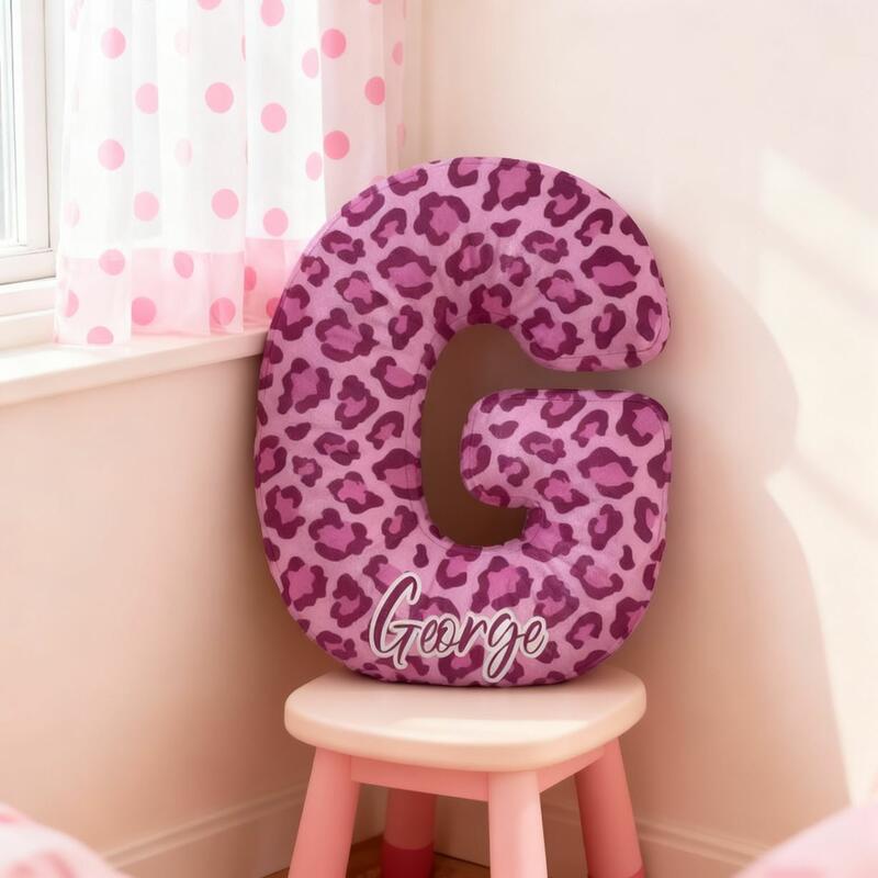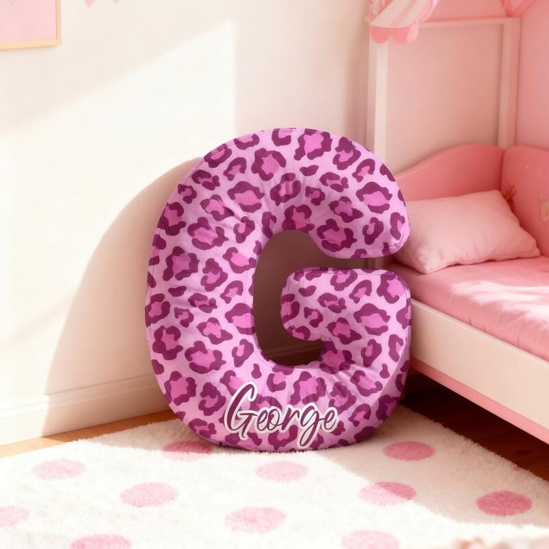Personalized 3D Letter Pillow Pink Leopard Print Pillow Fun Fabric Cushion for Her