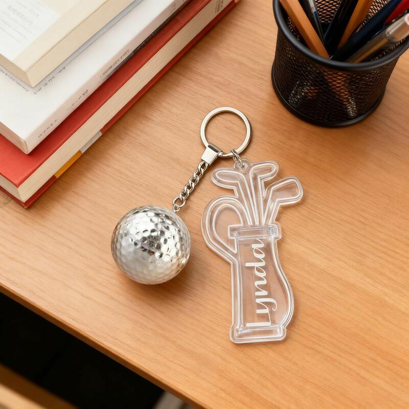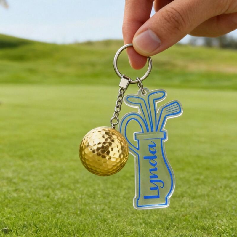Personalized Acrylic Name Keychain Electroplated Golf Ball Keychain for Golfers