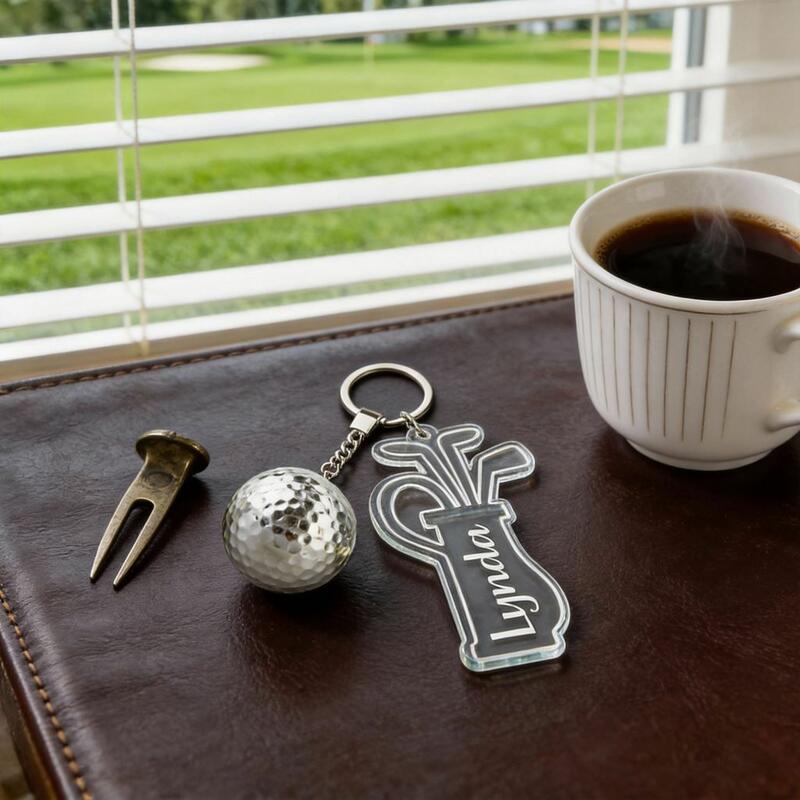 The superior quality of the dual materials – the crystal clear acrylic tag can be customized with your name, while the electroplated metal golf ball adds a touch of luxury.