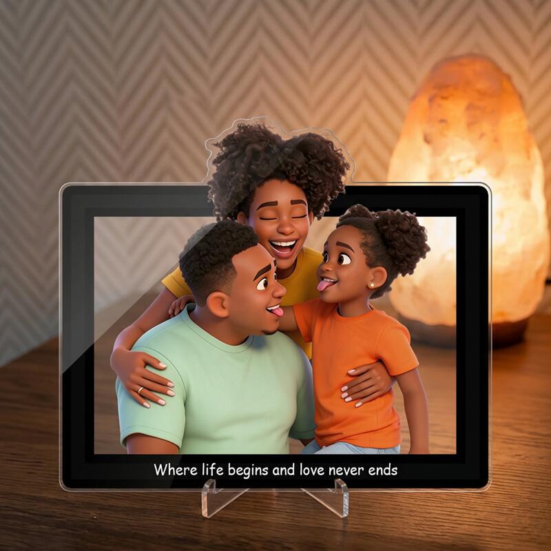Personalized Acrylic Plaque Custom Cartoon Style Photo Warm Words Design Perfect Gift for Family