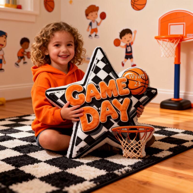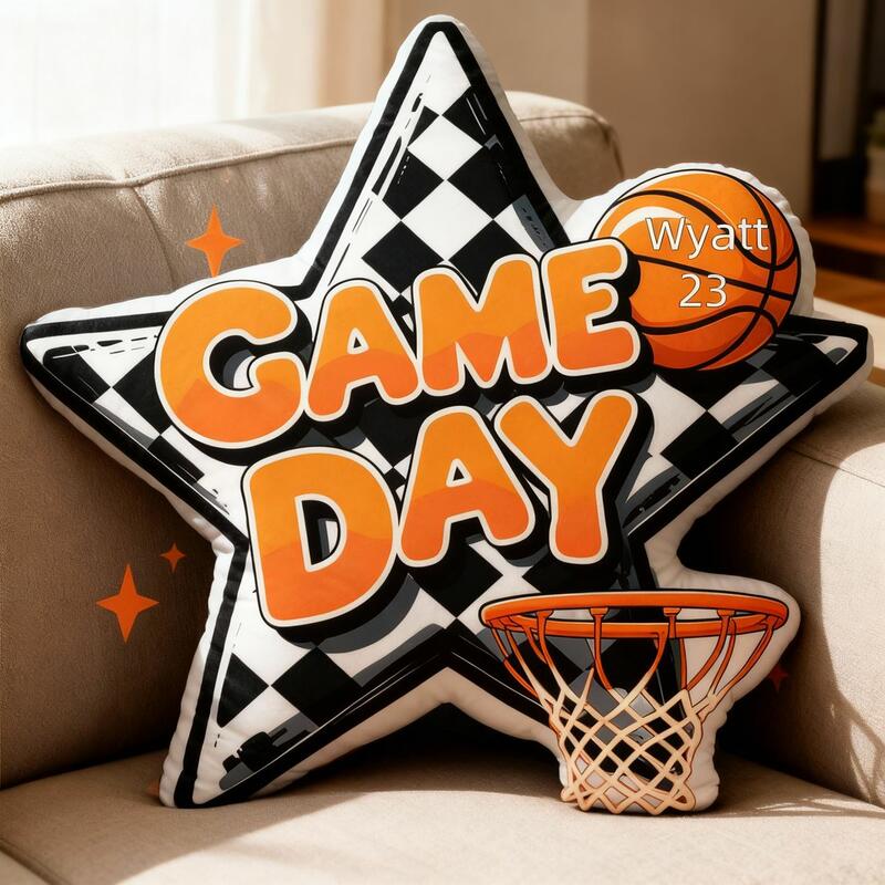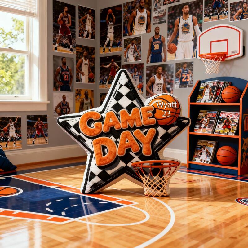 Personalized Basketball-Themed "Game Day" Star Cushion Birthday Gift for Basketball Enthusiasts