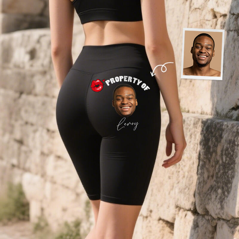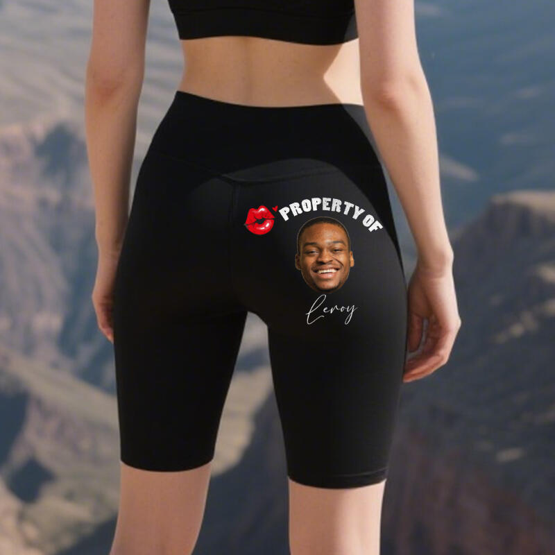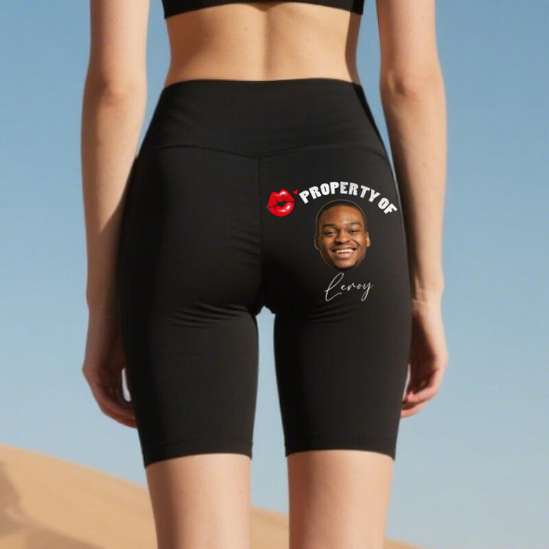 Personalized Biker Leggings Property Of You Custom Photo and Name Design Funny Gift for Her Lover Wife