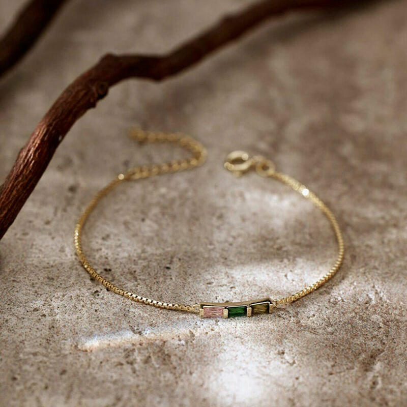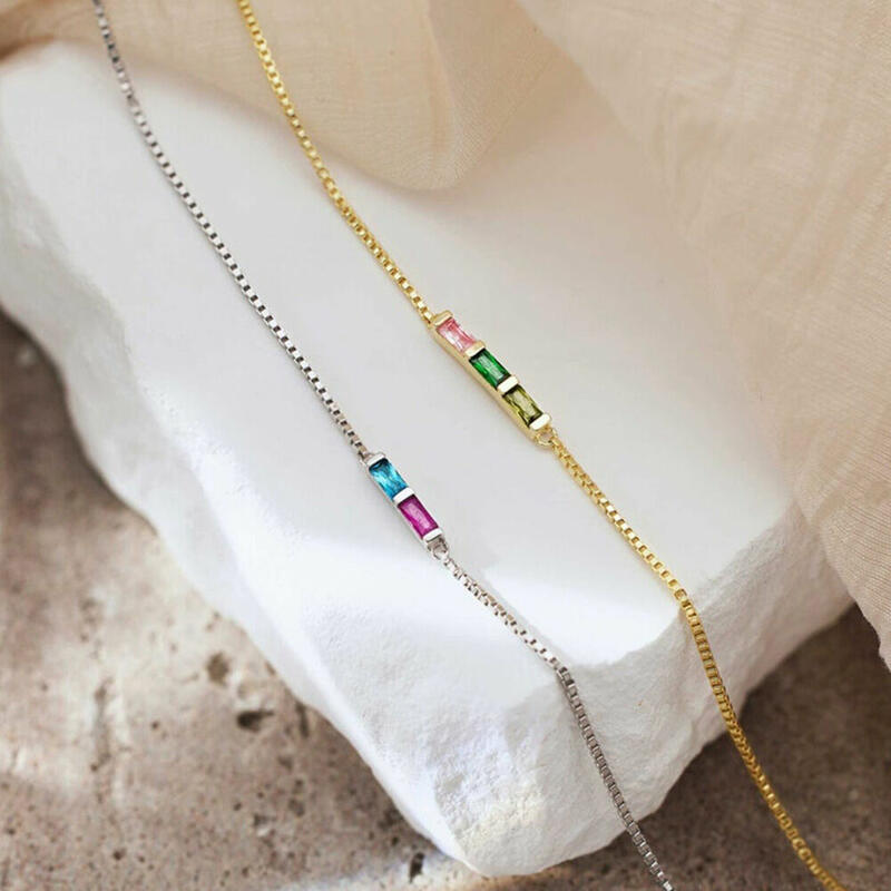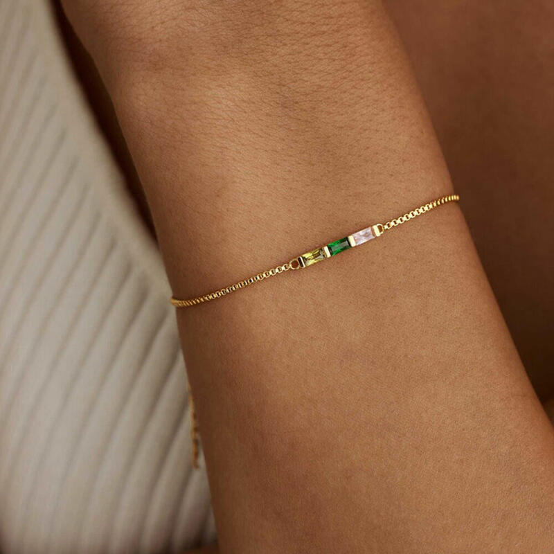 Introducing our exquisite Birthstone Bracelet, a perfect gift for the sophisticated woman who appreciates timeless elegance. This minimalist yet luxurious piece is designed to celebrate the unique beauty of each month's birthstone, making it an ideal birthday present that transcends trends and complements any style.