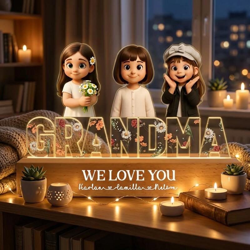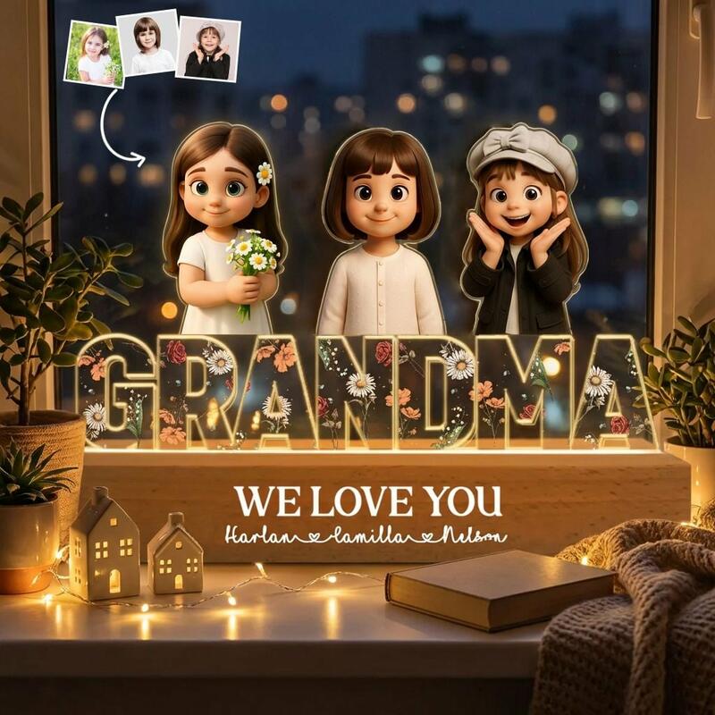 Personalized Cartoon Picture Night Light with Custom Birthflower Cute Gift for Mother's Day