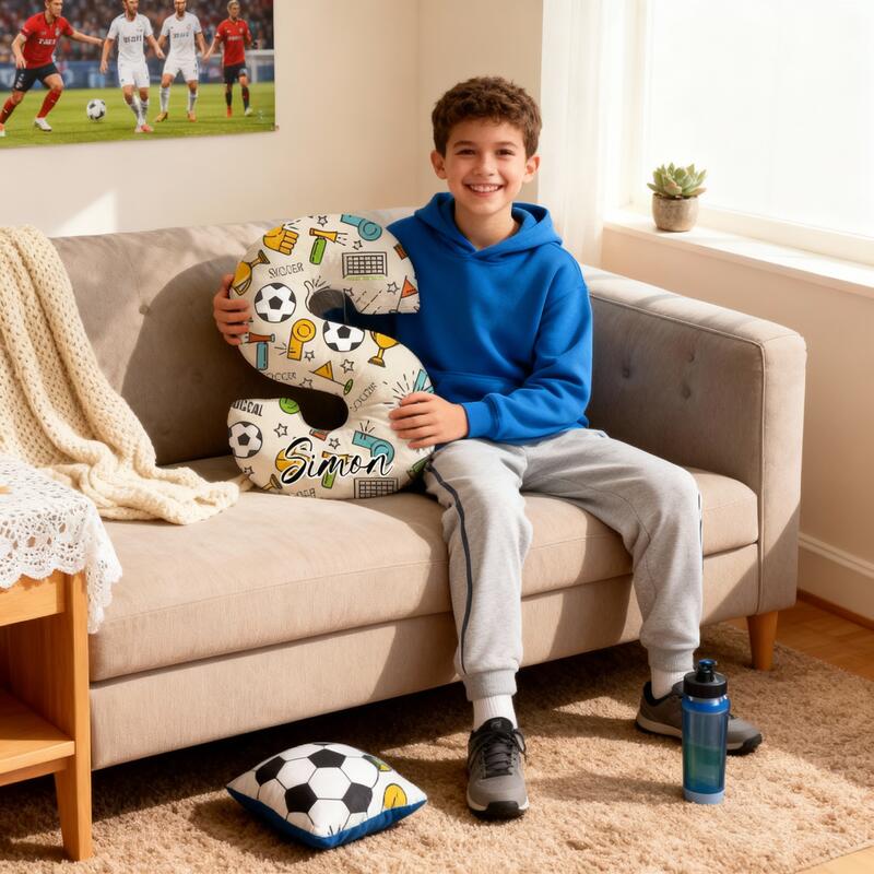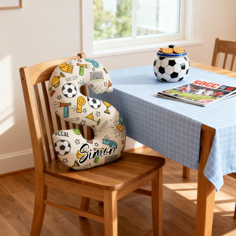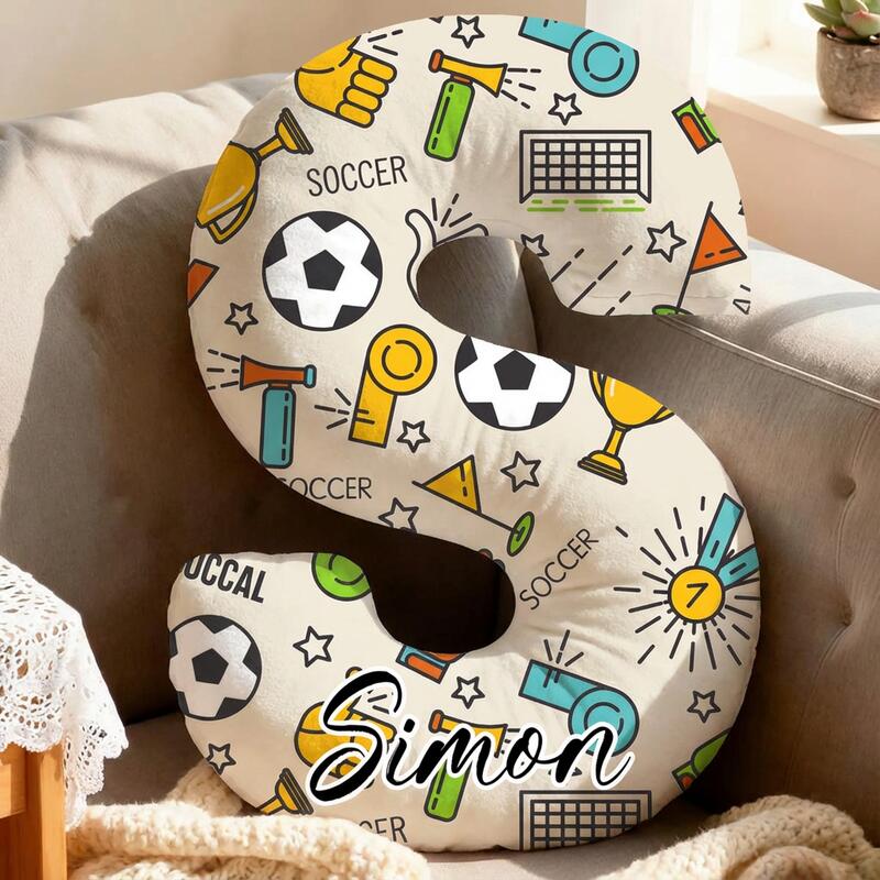 Personalized Cartoon Soccer Ball Pattern Letter Pillow Cute Gift for Sports Enthusiasts