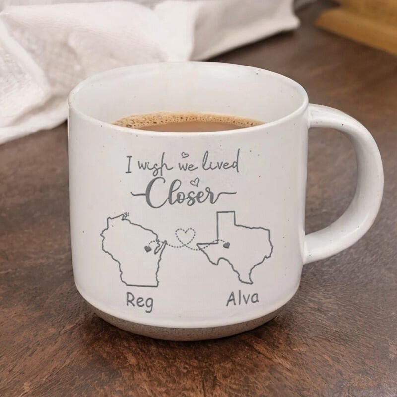 Personalized Ceramic Mug "Iwish We Lived Closer" Romantic Gift For Long-Distance Relationship