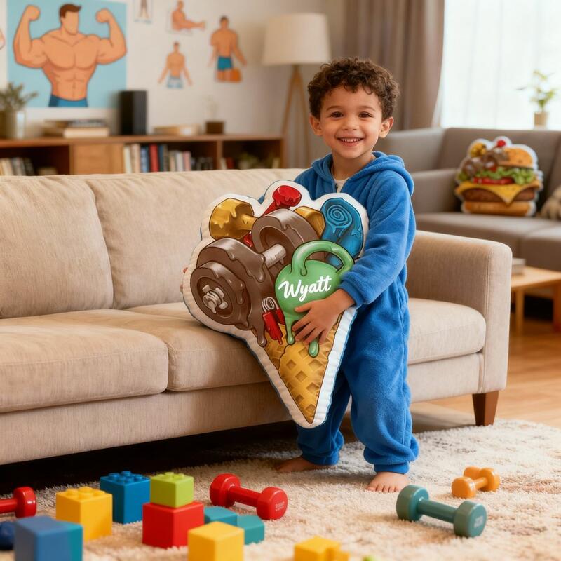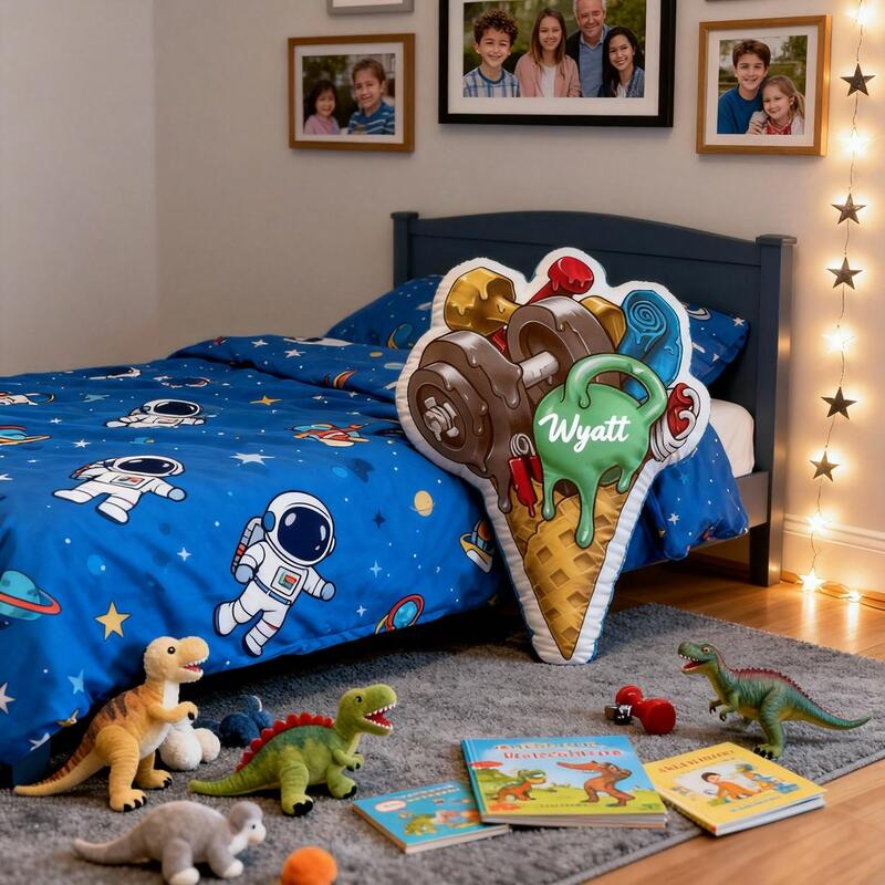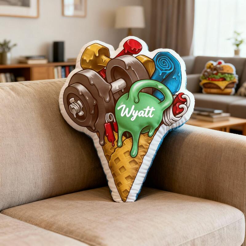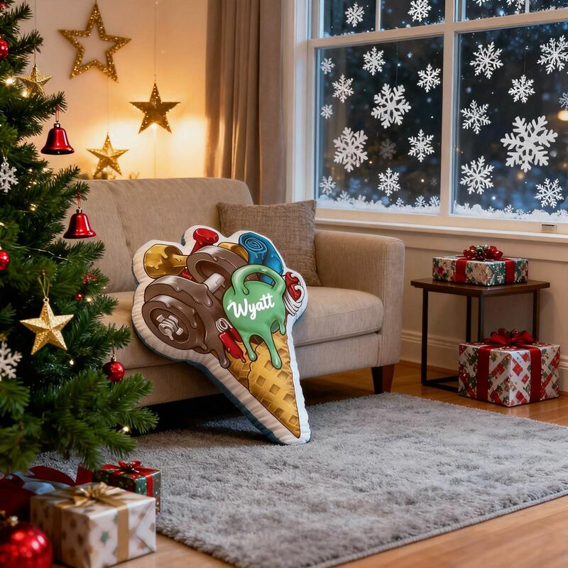 Personalized Cone Pillow Add Name Ice Cream Print Pillow Fun Christmas Gift for Kids