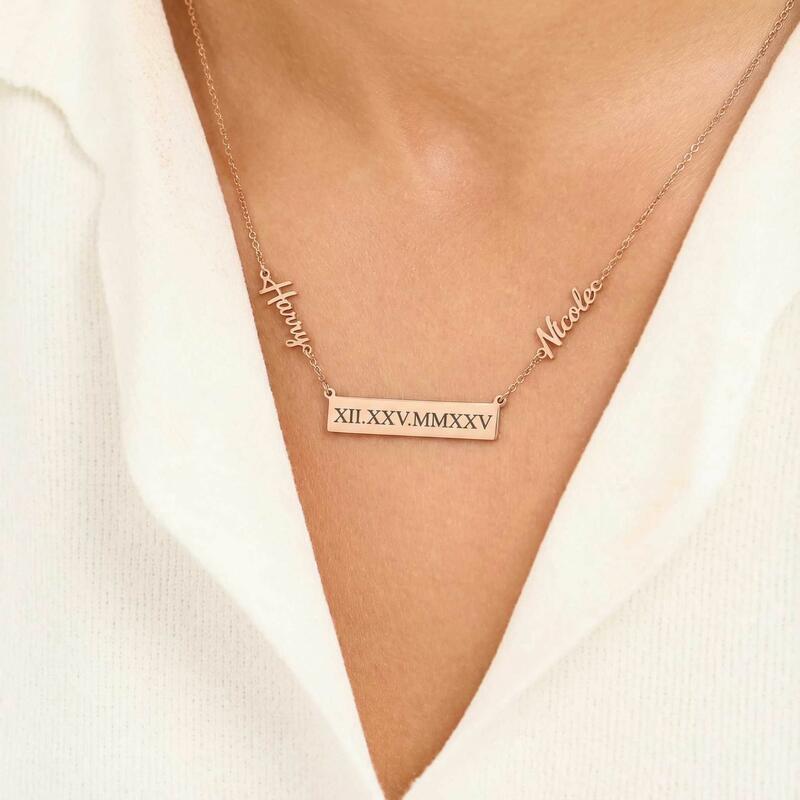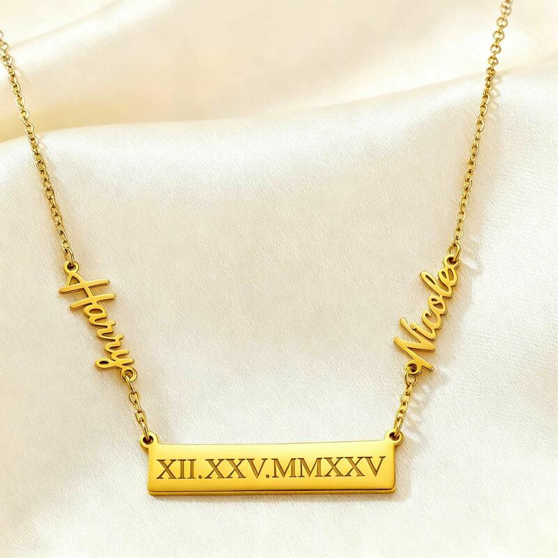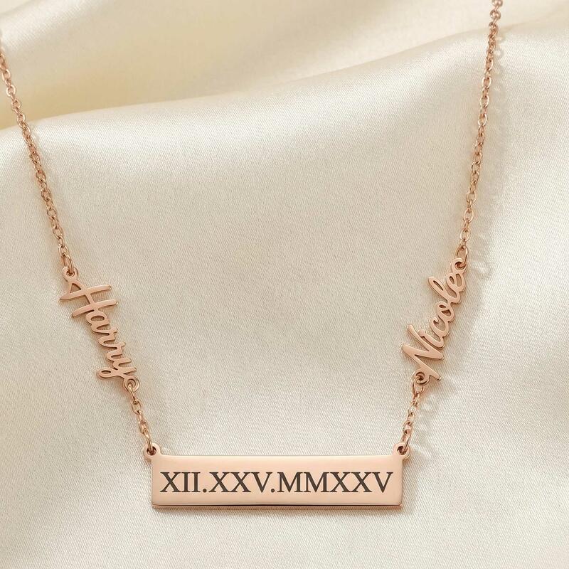 Personalized Couple Name Necklaces with Roman Numerals Sweet Gift for Your Anniversary