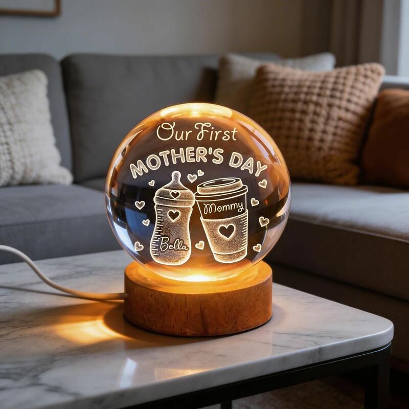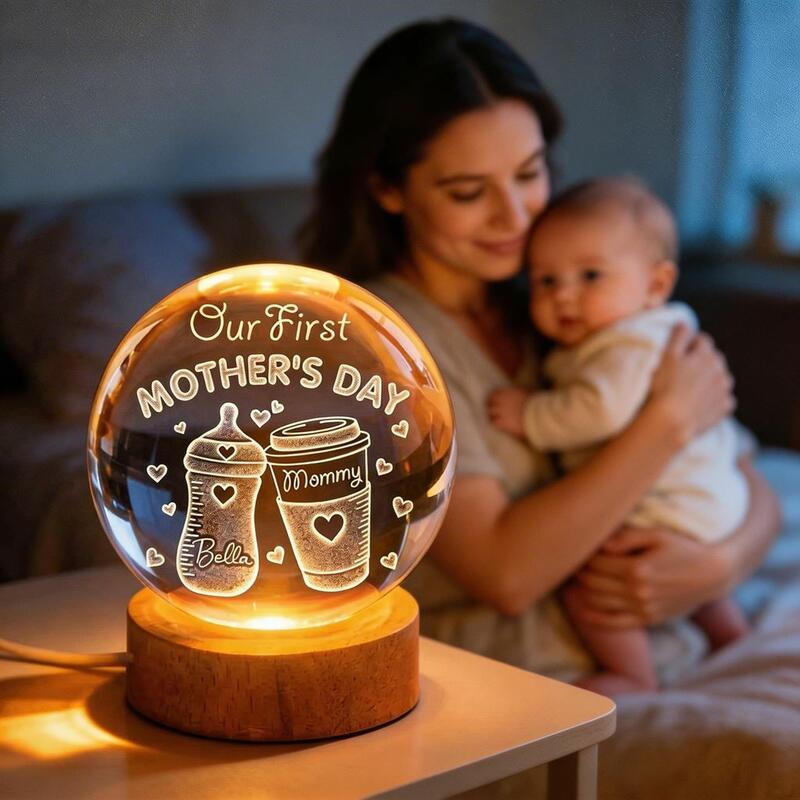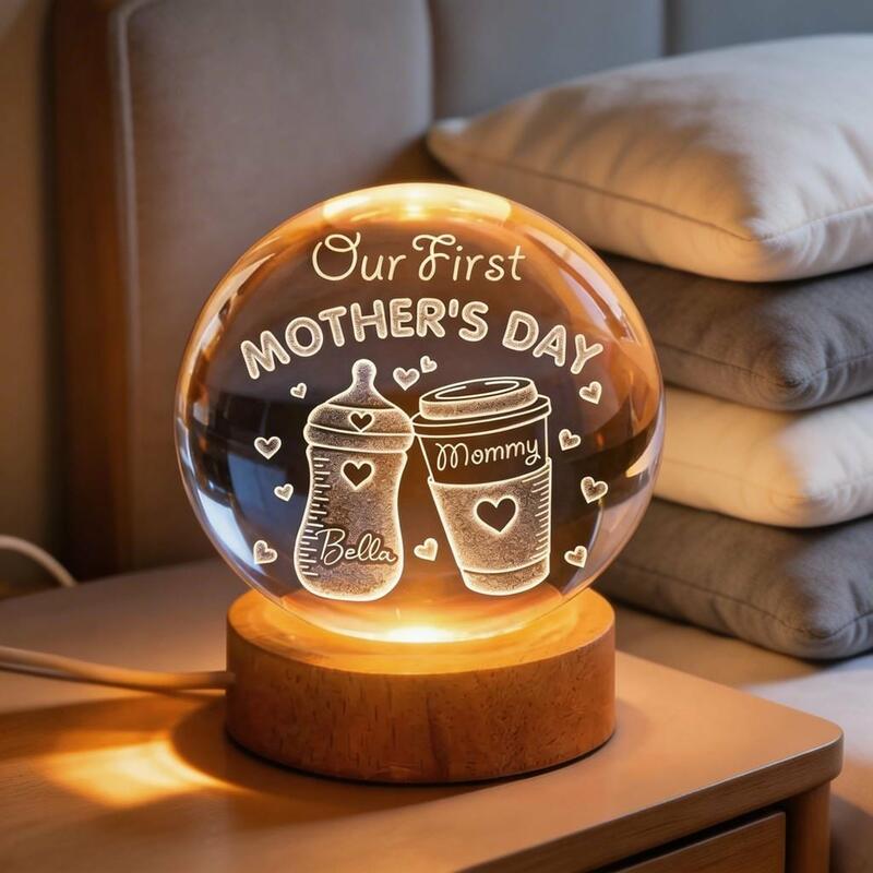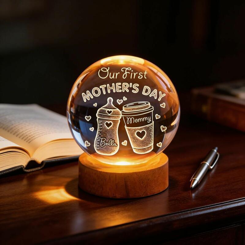 Personalized Crystal Ball Lamp 3D Engraved Night Light a Mother's Day Gift for New Mothers
