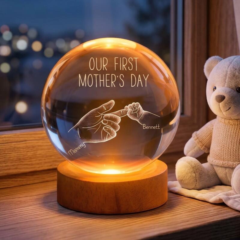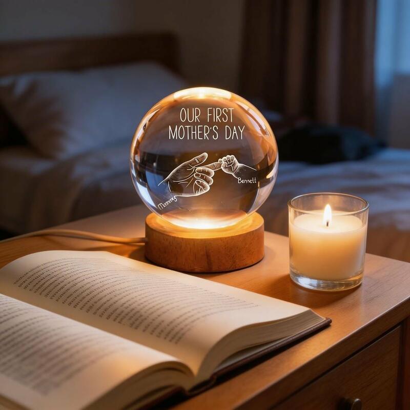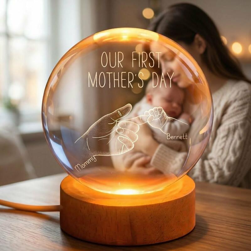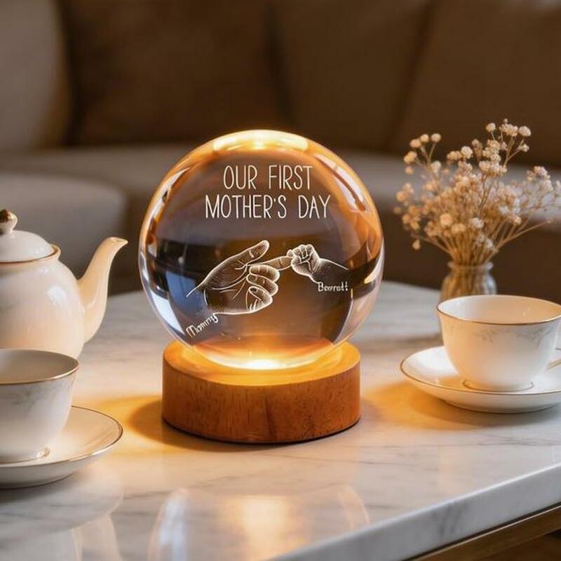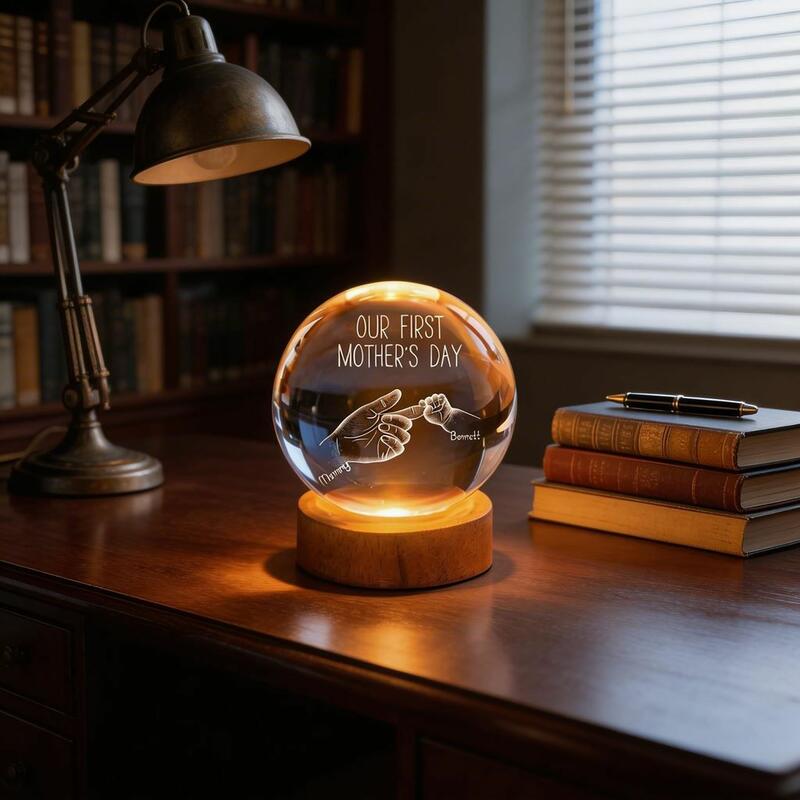 Personalized Crystal Ball Lamp with Child's Name Perfect First Mother's Day Gift for New Mom