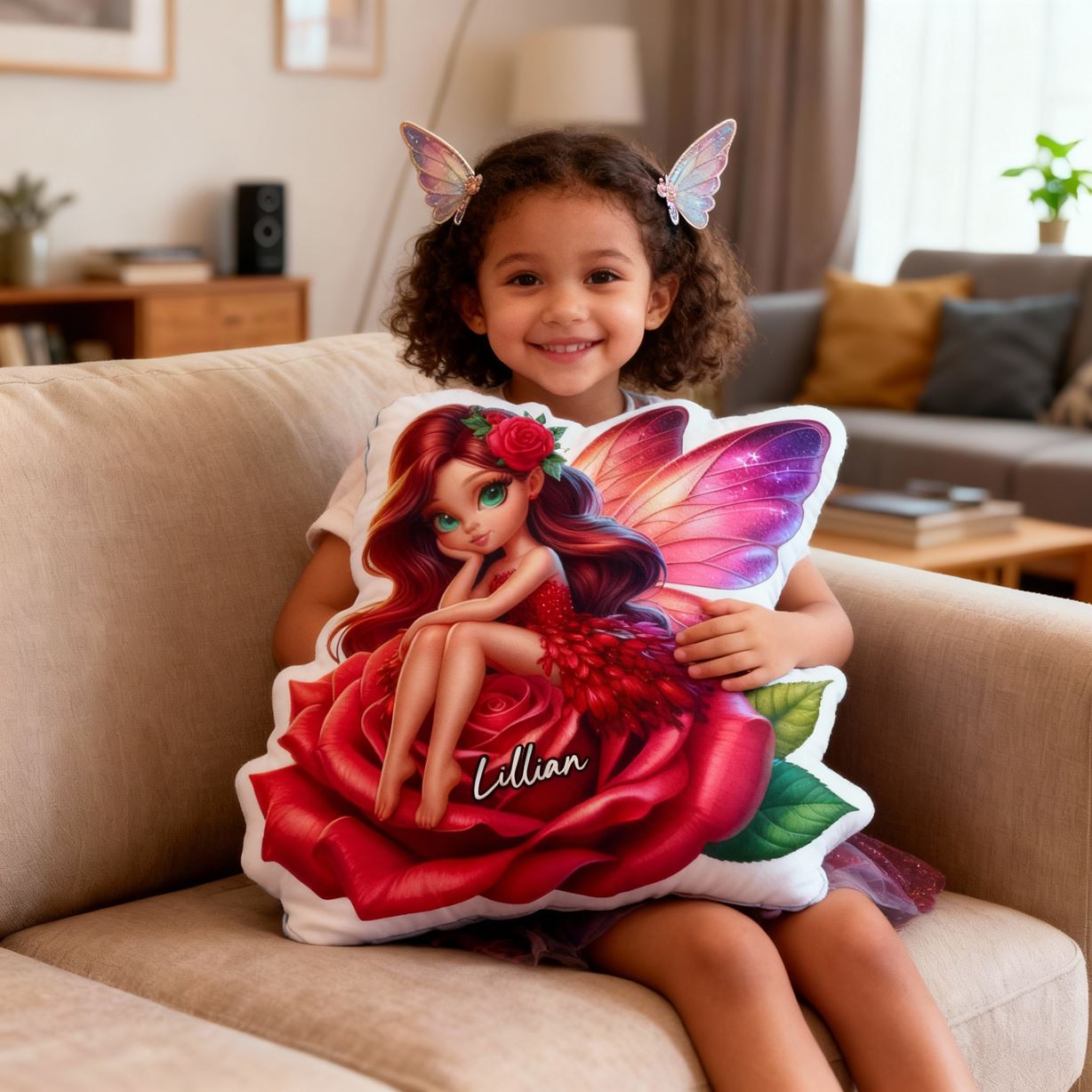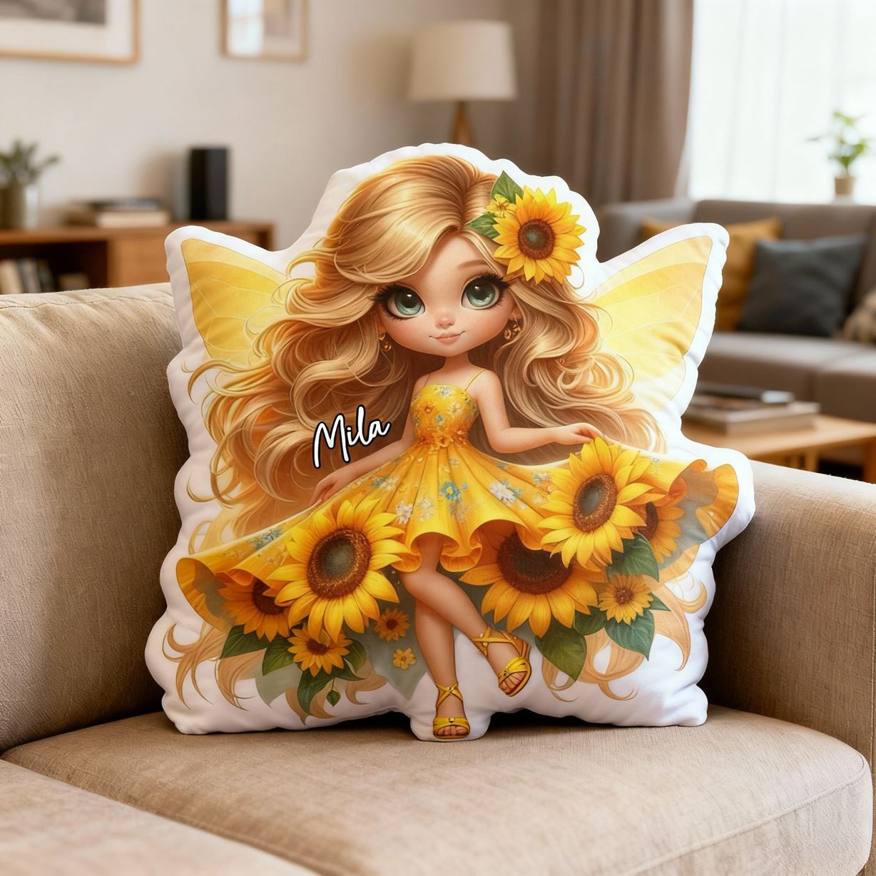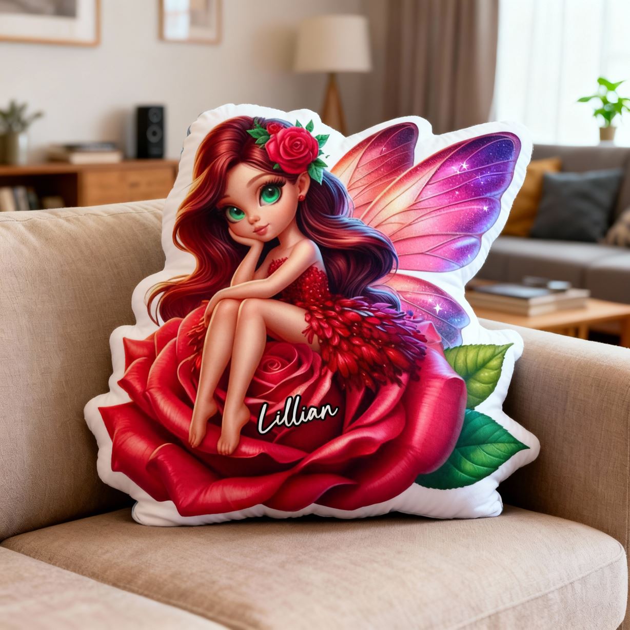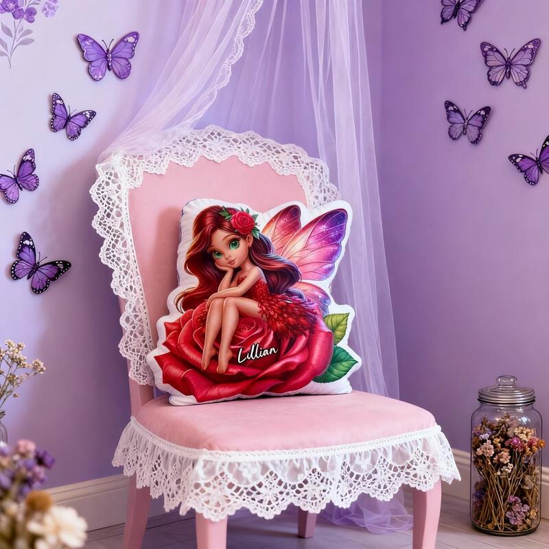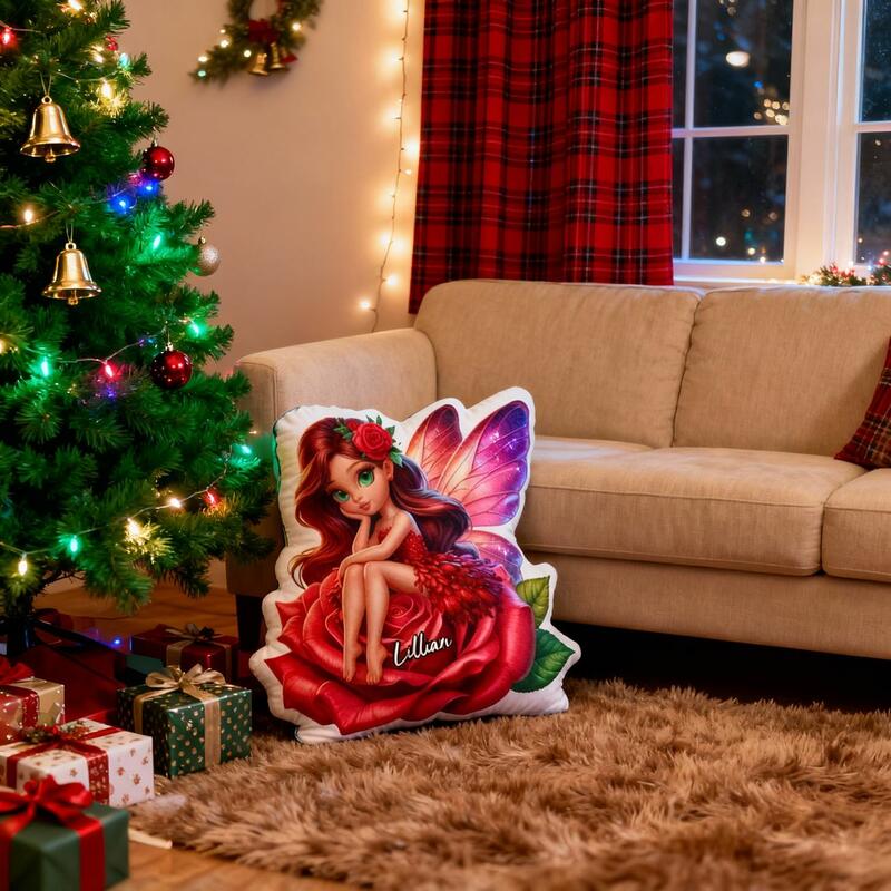 Personalized Flower Fairy Pillow Cartoon Girl Print Pillow Beautiful Christmas Gift for Girls