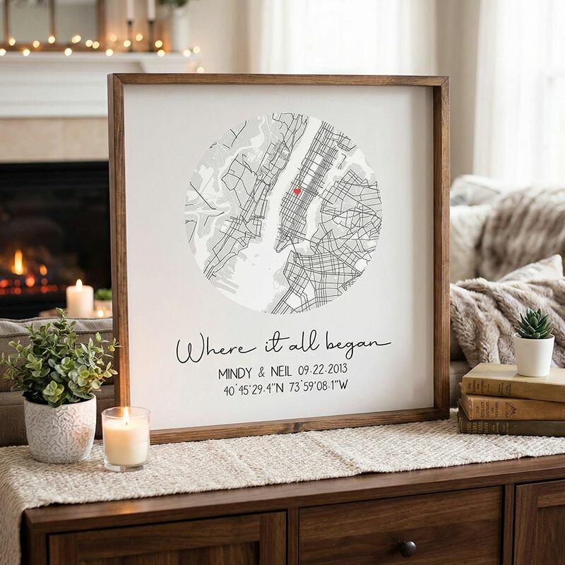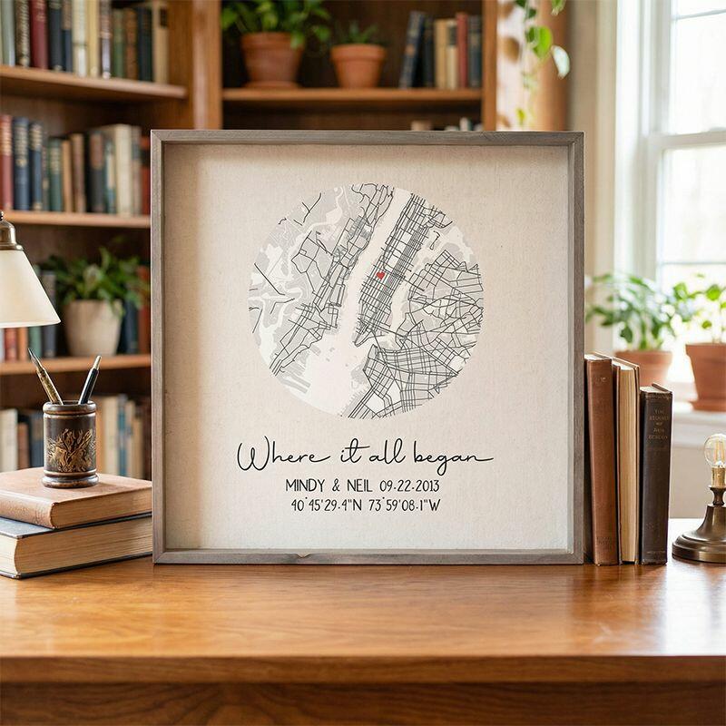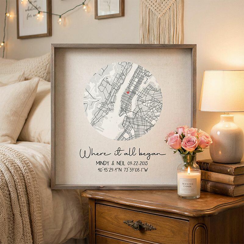 Personalized Frame Custom Map Where It All Began Memorable Gift for Long Distance Relationships