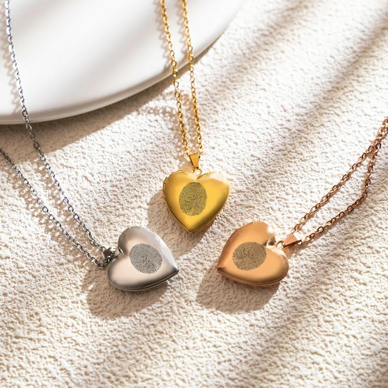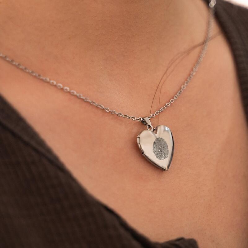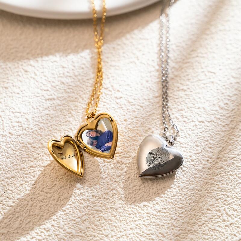 Personalized Heart Shape Photo Necklace With Fingerprint Memorial Gift For Loved Ones