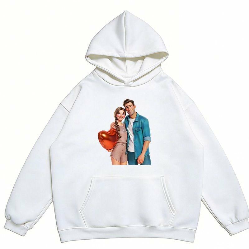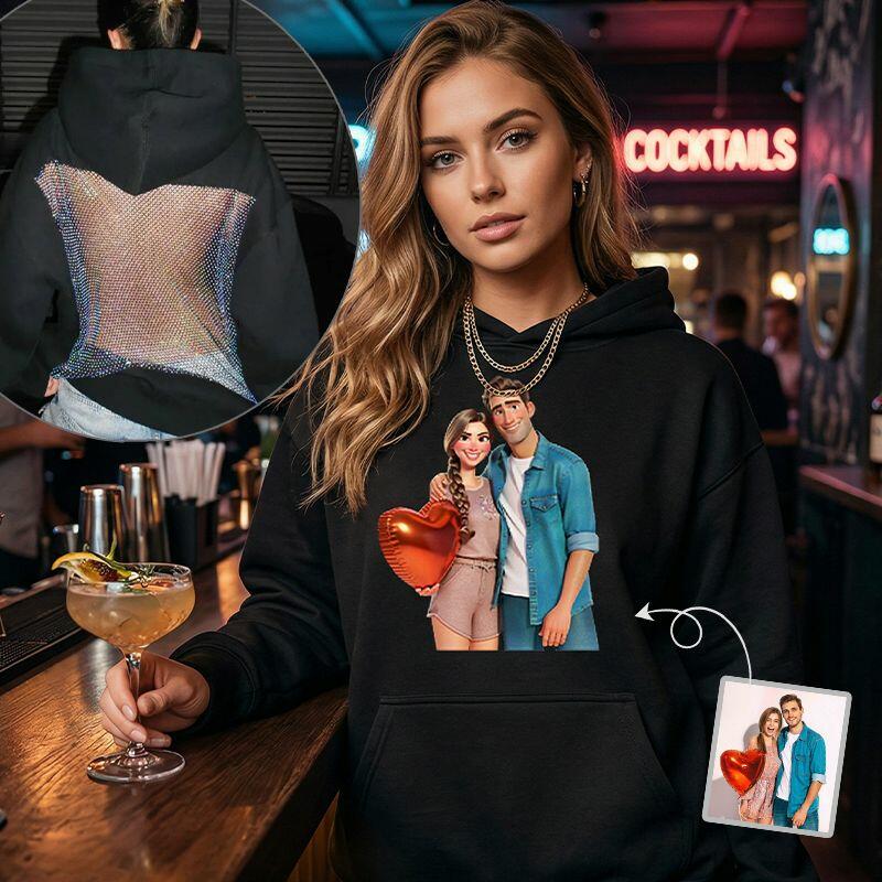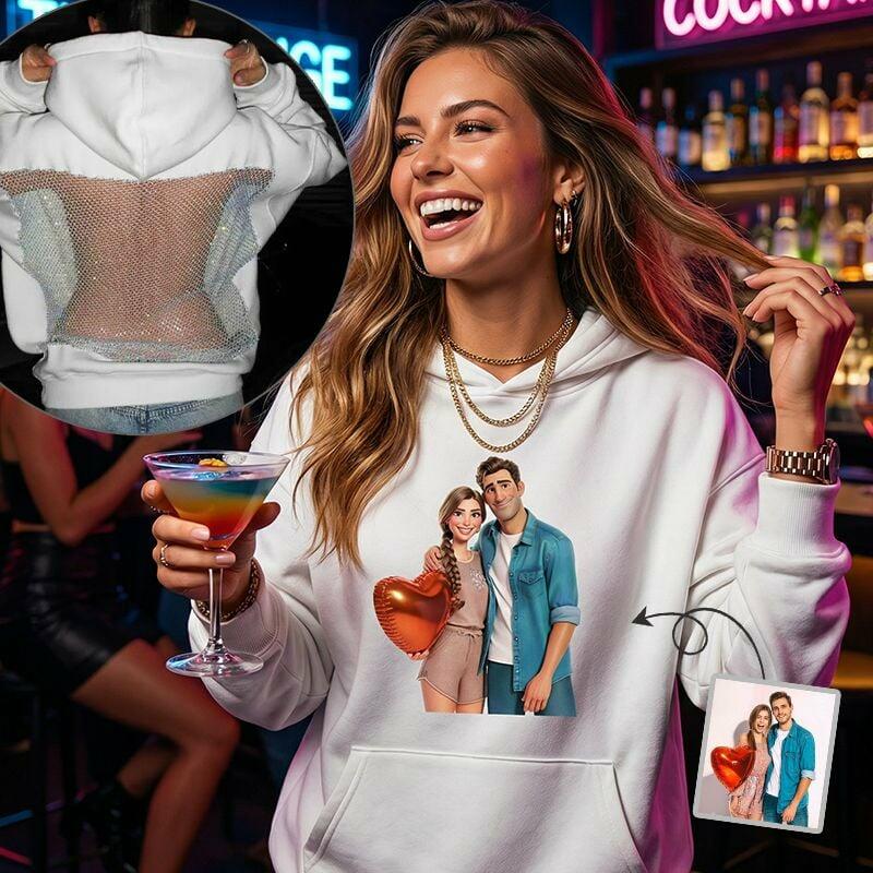 Personalized Hoodie Backless Openwork Sheer Custom Couple Photo Cartoon Style Fashion Design Perfect Gift for Her