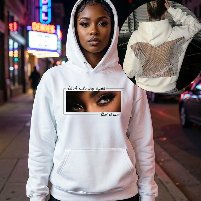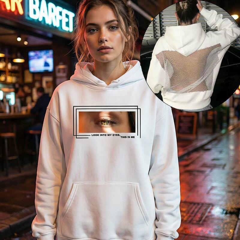 Personalized Hoodie Backless Openwork Sheer Custom Eye Photo Trendy Sexy Design Perfect Gift for Her Friends