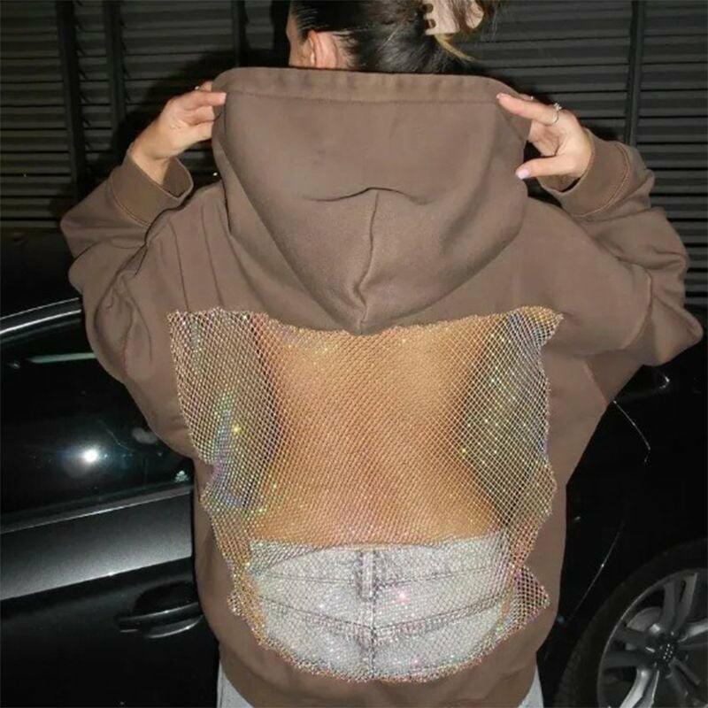 Designed for perfect seasonal harmony, it keeps the front cozy and warm while flaunting a chic, figure-enhancing back—ideal for fall and winter layering. Blending unisex modernity with bold streetwear flair, this hoodie caters perfectly to fashion-forward women who love to make a statement.