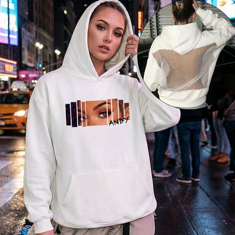 Personalized Hoodie Backless Openwork Sheer Custom Eyes Fashion Design Sexy Creative Gift for Girlfriends