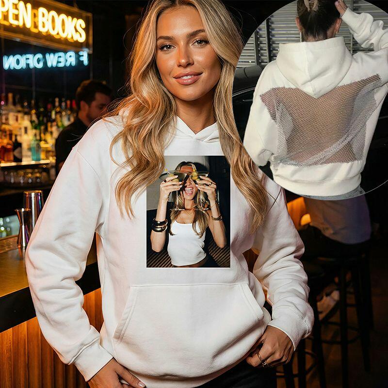 Personalized Hoodie Backless Openwork Sheer Custom Photo Fashion Sexy Design Attractive Gift for Her