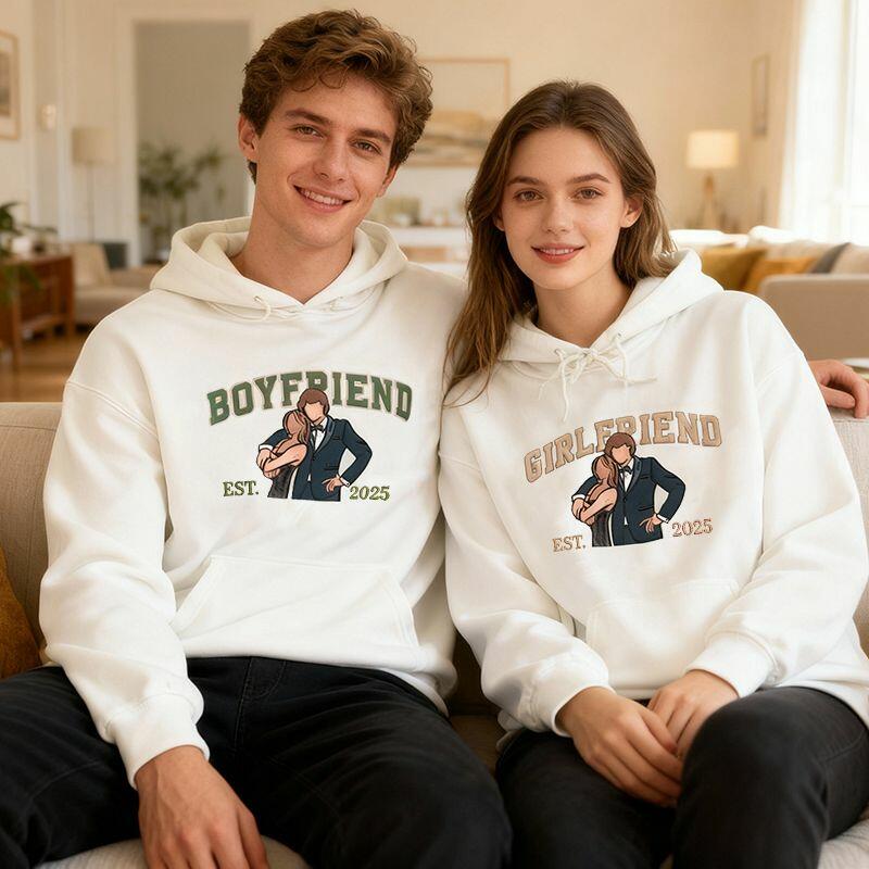 Personalized Hoodie Embroidered Custom Photo Boyfriend and Girlfriend Design Perfect Gift for Couples
