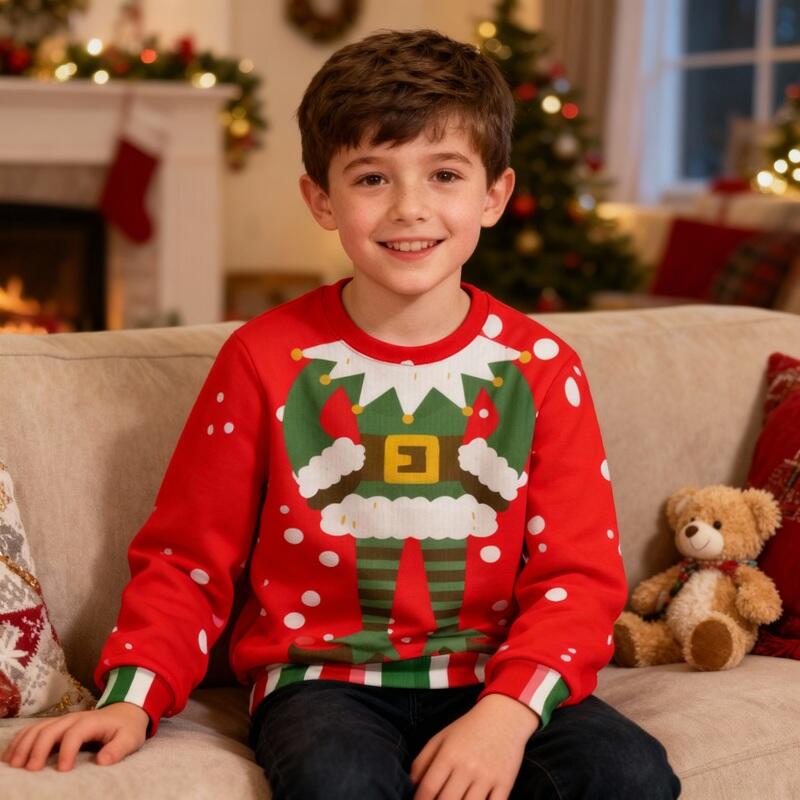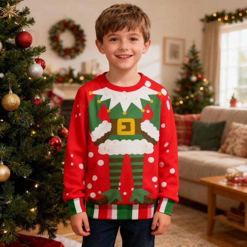 This sweater has a fun custom photo feature that makes it stand out. Pick your child's favorite snapshot (silly family selfies, pup-in-Santa shots, goofy friend photos, or a vivid moment of their own), and we’ll print it in vibrant, long-lasting color right on the sweater. Paired with various Christmas-related patterns, the sweater is filled with a festive vibe. It’s a wearable atmosphere activator, conversation starter and nostalgia trigger for all holiday gatherings.