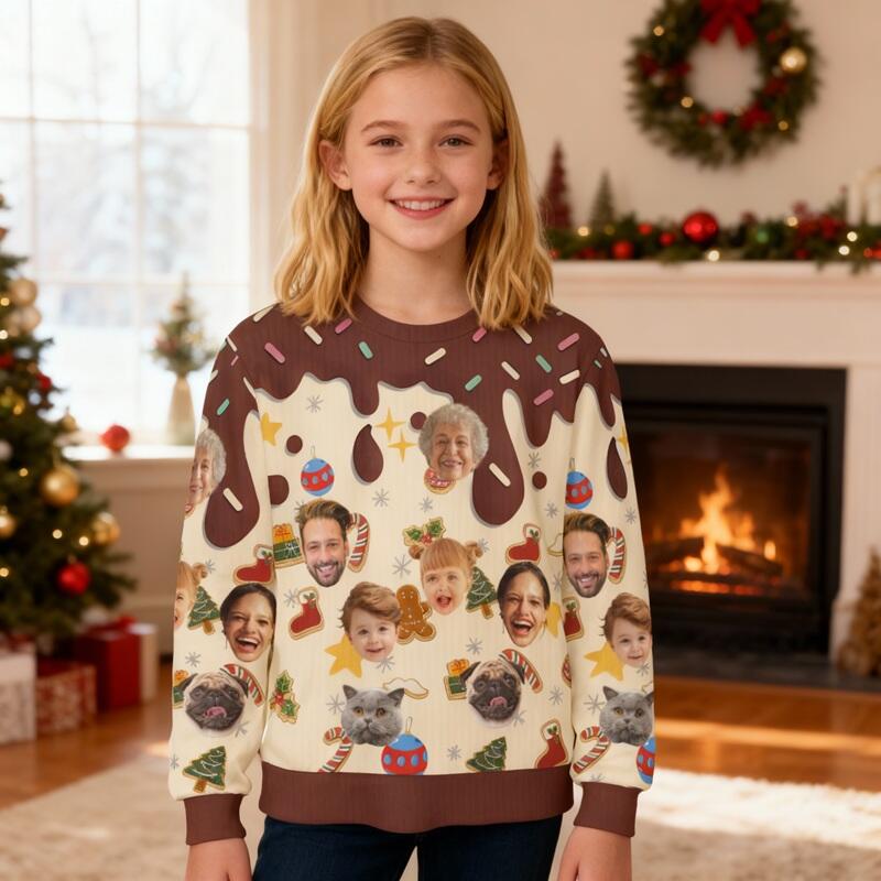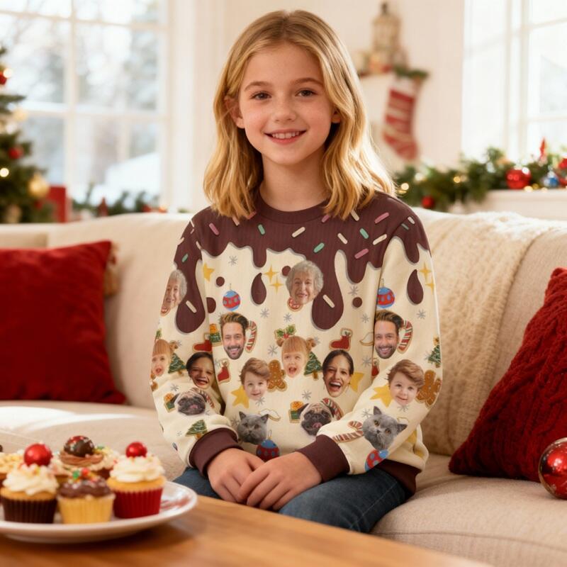 Personalized Kids Ugly Sweater Unisex Custom Face Photo Dessert Style Funny Design Christmas Gift