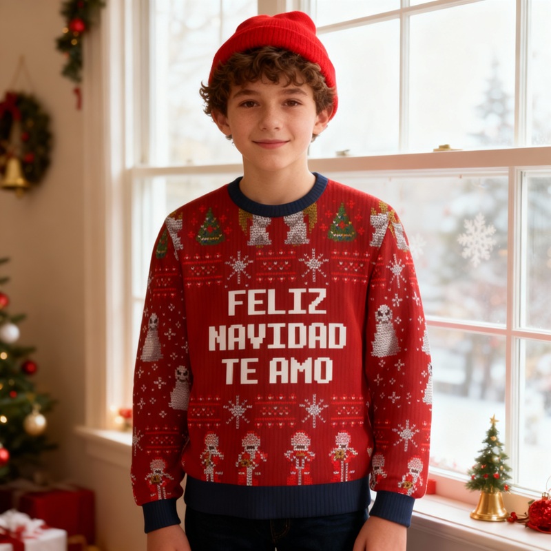 This sweater has a fun custom photo feature that makes it stand out. Pick your child's favorite snapshot (silly family selfies, pup-in-Santa shots, goofy friend photos, or a vivid moment of their own), and we’ll print it in vibrant, long-lasting color right on the sweater. Paired with various Christmas-related patterns, the sweater is filled with a festive vibe. It’s a wearable atmosphere activator, conversation starter and nostalgia trigger for all holiday gatherings.​