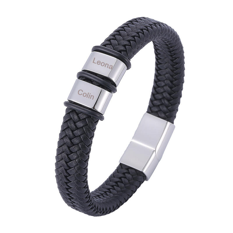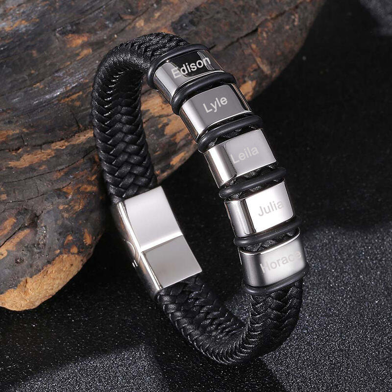 Personalized Leather Men's Bracelet Customized Name Group For Dad