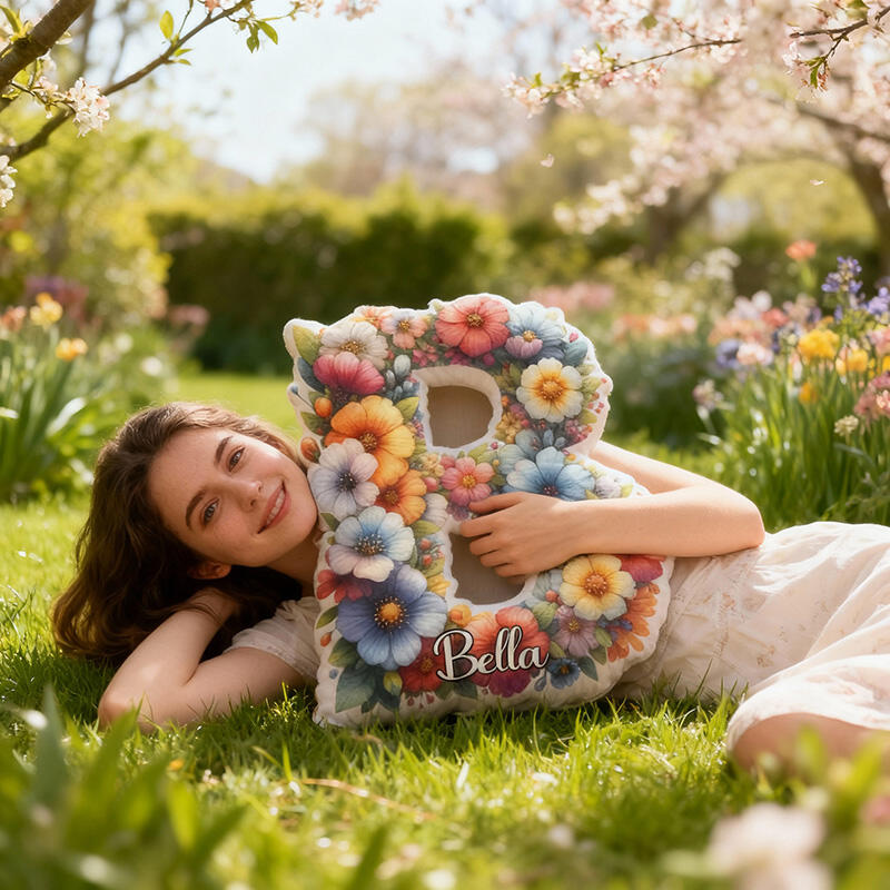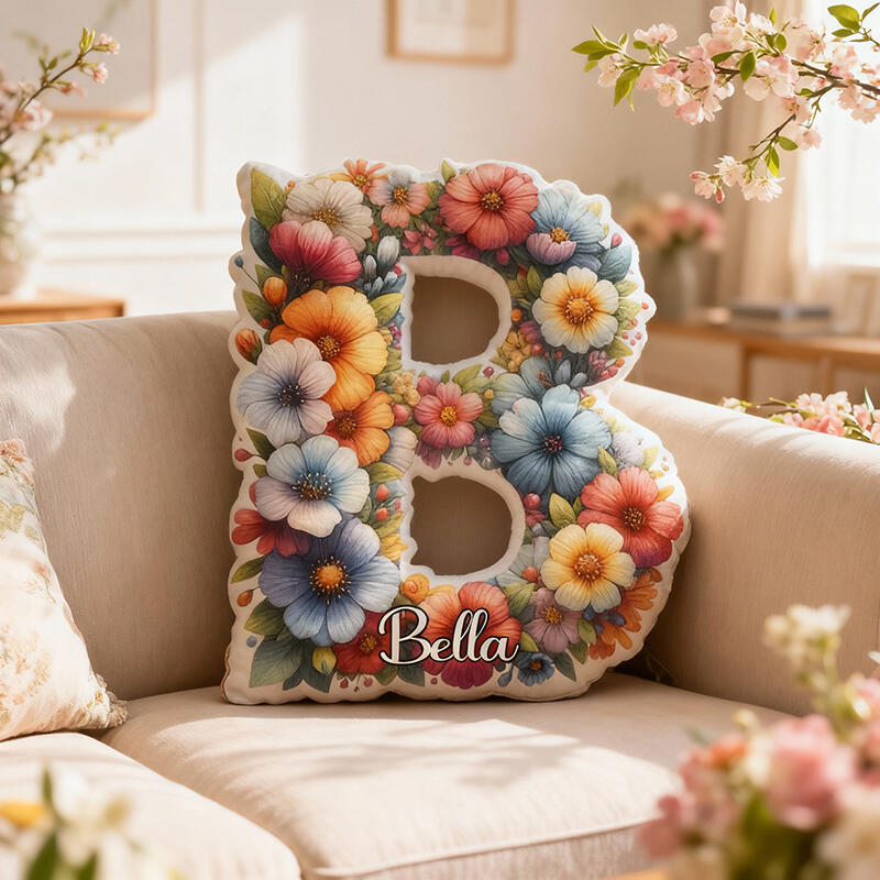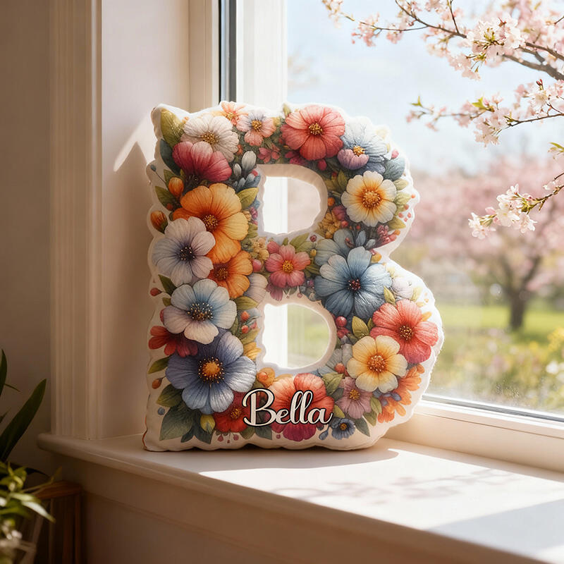 Personalized Letter Pillow with Color Flowers Pattern Best Christmas Present