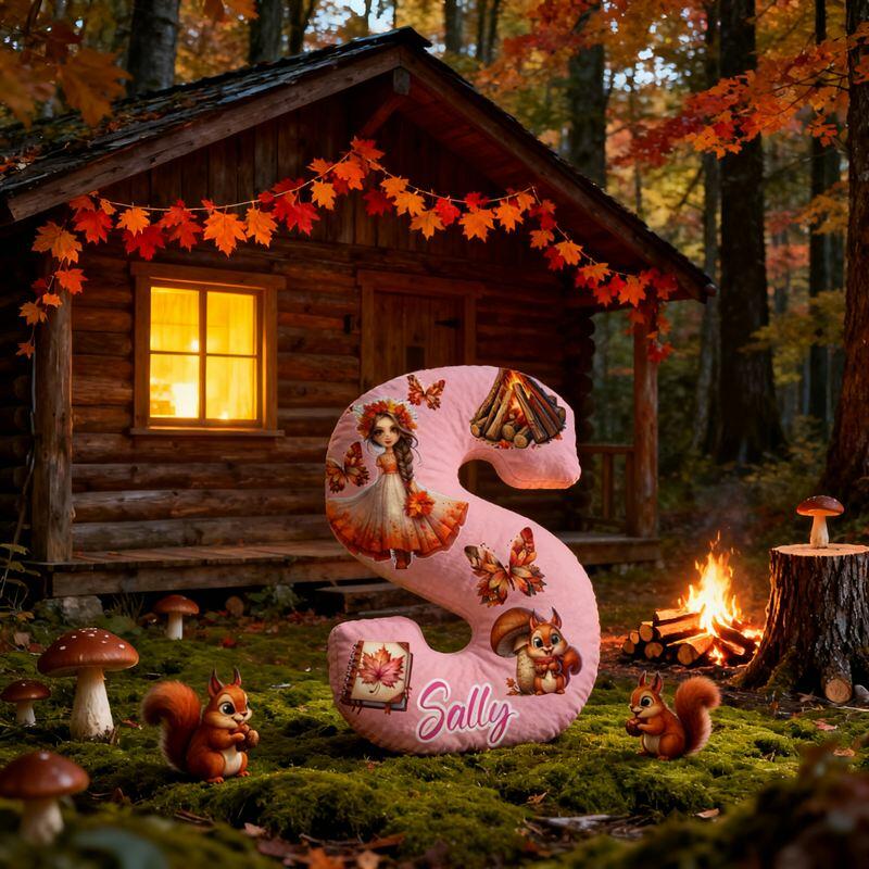 Personalized Letter-Shaped Pillow Campfire Butterflies Autumn Vibe Design Gift for Kids