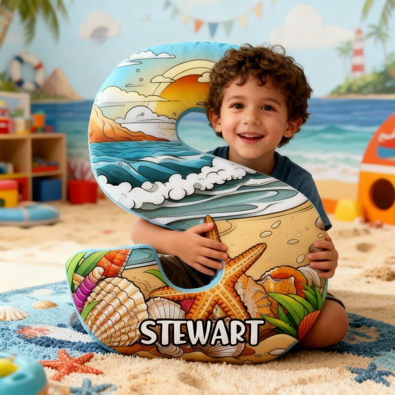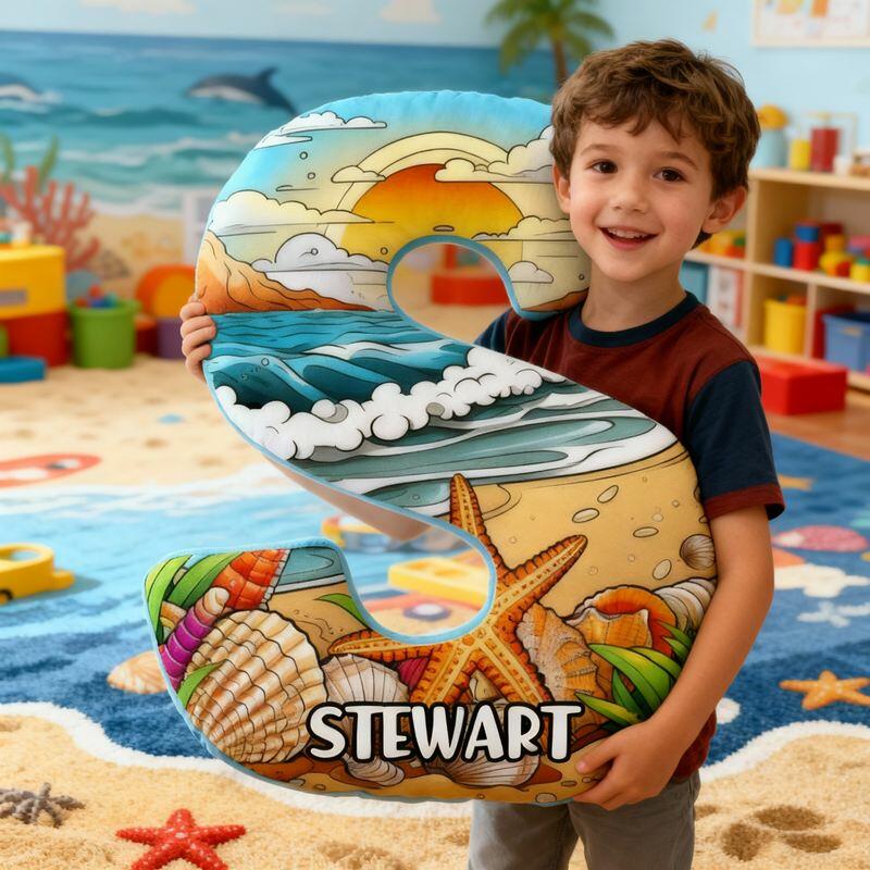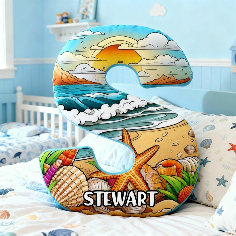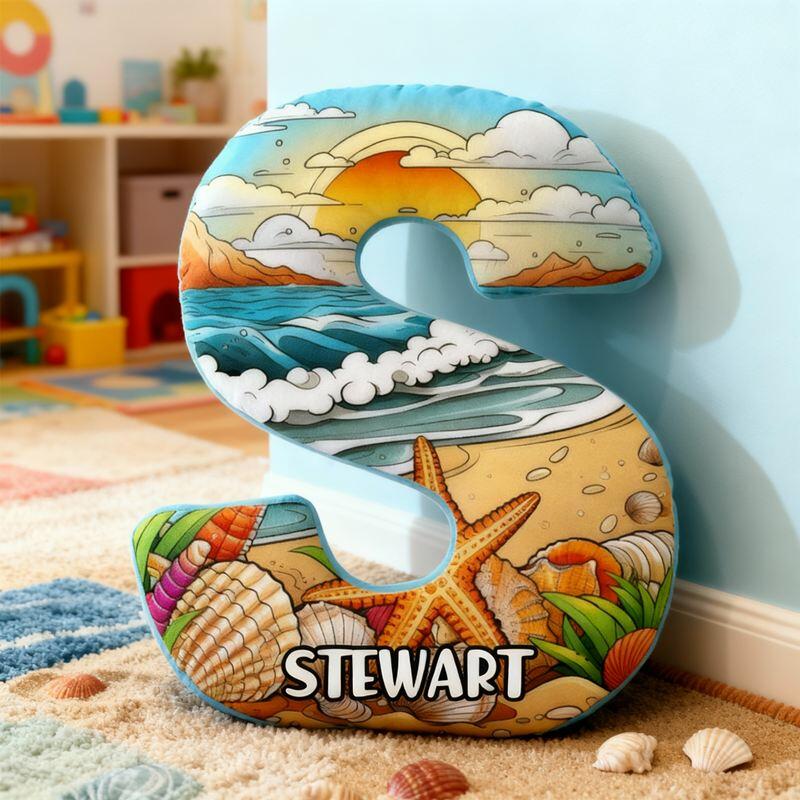 Personalized Letter-Shaped Pillow Sunrise On The Beach Design Perfect Gift for Kids