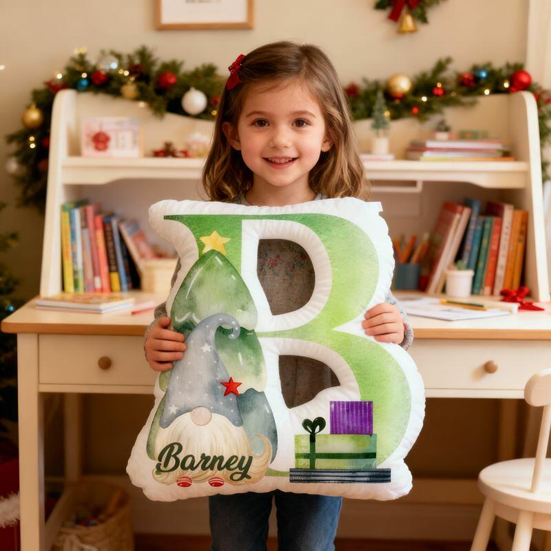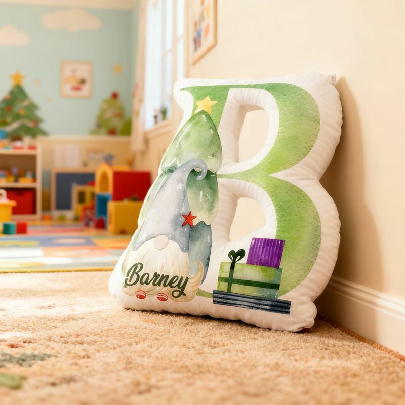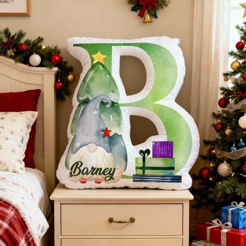 Personalized Letter-Shaped Pillow Watercolor Style Elf Design Christmas Gift for Kids