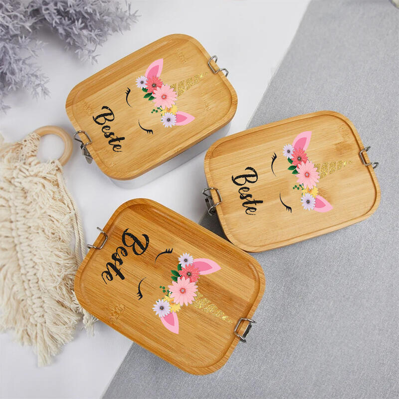 The personalized lunch box is made of stainless steel and wood material, the material is fine, the workmanship is exquisite, and it is easy to wash. Custom Lunch Boxes can be customized with your name and photo on the lid to generate your unique logo and express your personality. It is also the best gift for children back to school.
