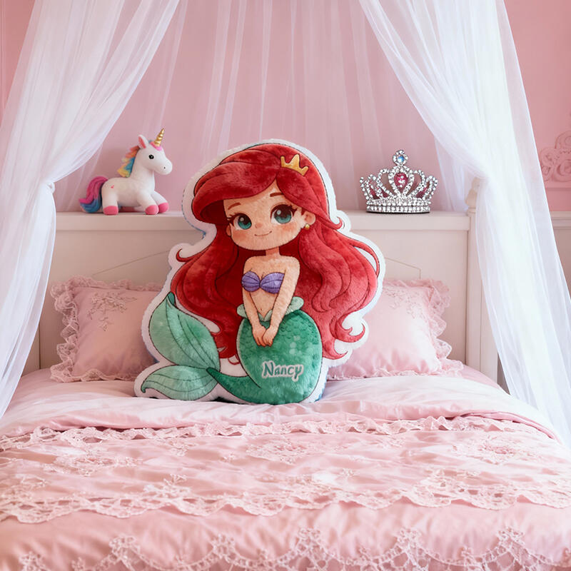 Personalized Mermaid Princess Pillow Customizable with Your Name Cute Christmas Gift for Girls