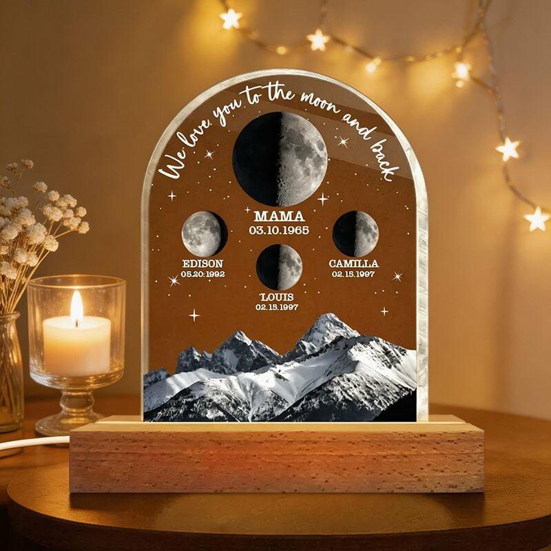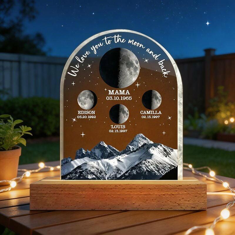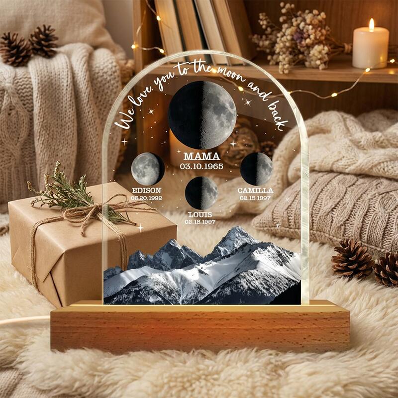 Personalized Moon Phase Photo Night Light with Mountain Design Stylish Gift for Mother's Day
