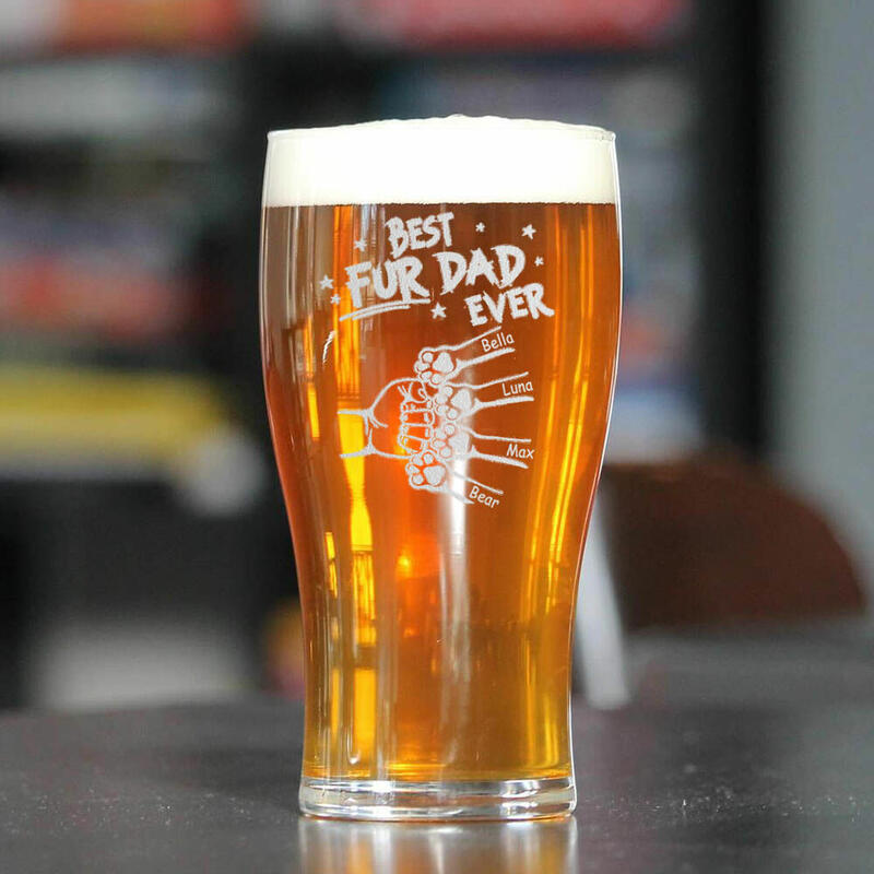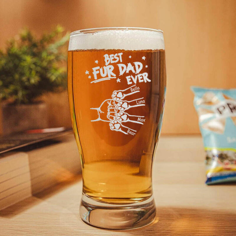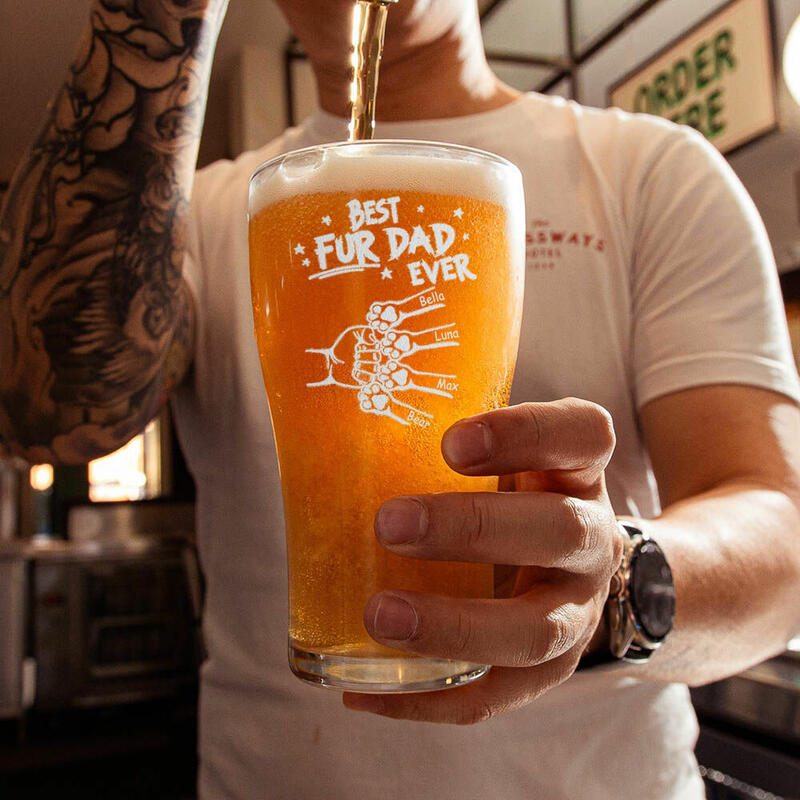 Personalized Name Beer Glass with Pawprint Pattern Lovely Gift for Pet Lover "est Fur Dad"