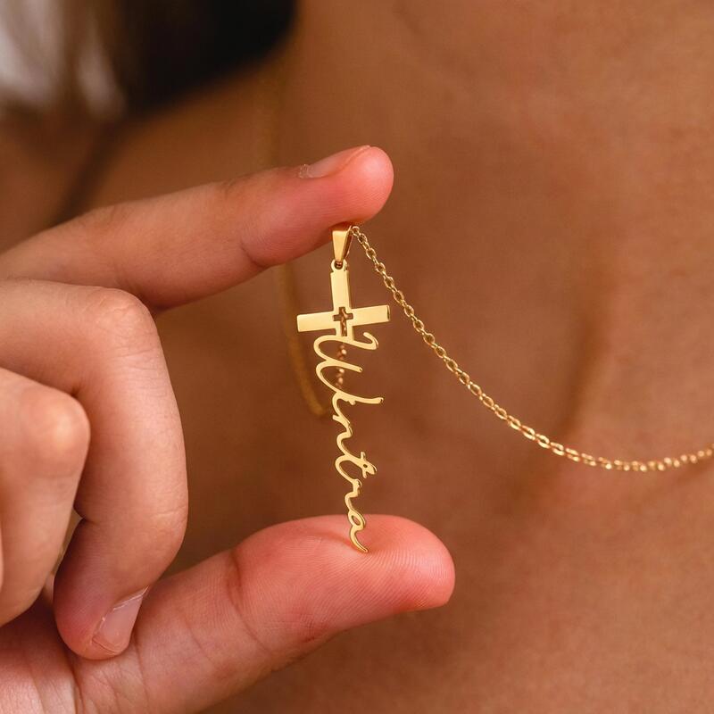 Personalized Name Necklace with Cross a Simple Gift for Family