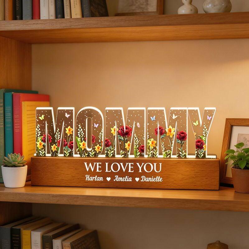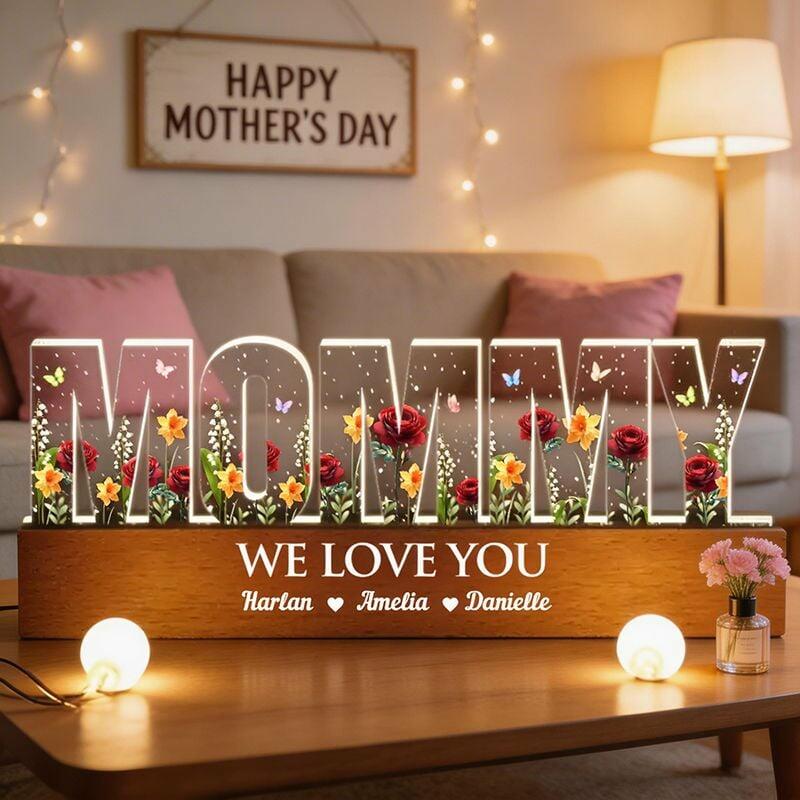 Personalized Name Night Light with Custom Birthflower Great Gift for Mother's Day