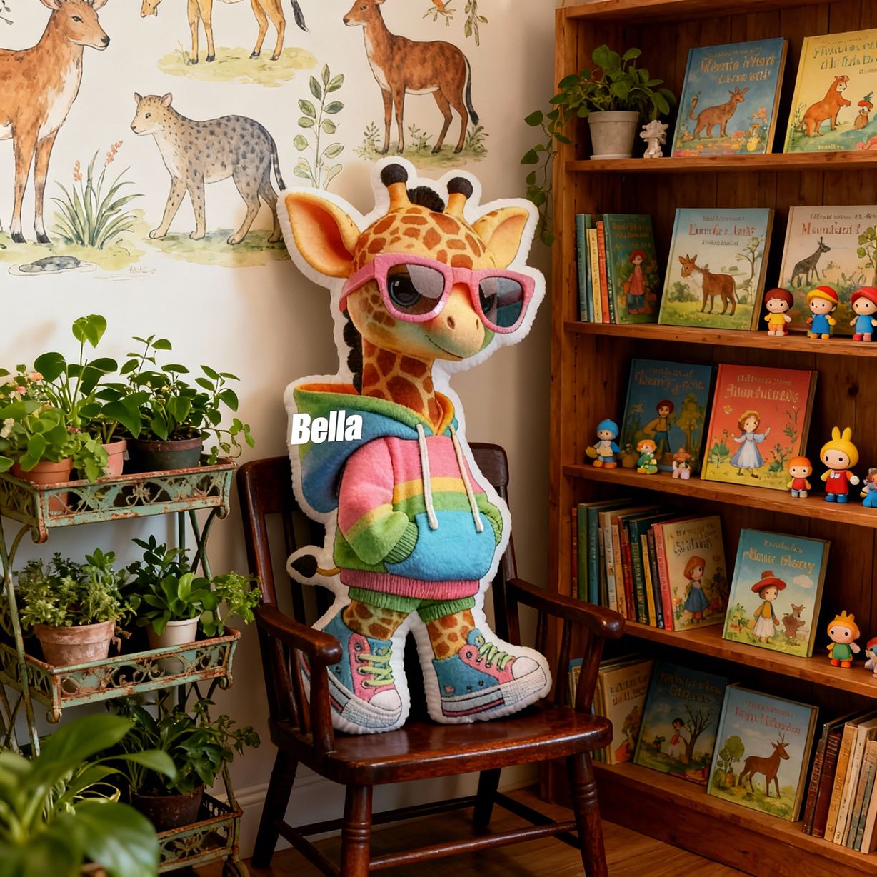 Personalized Name Pillow Giraffe Backpack Cushion Cute Plush Pillow for Children