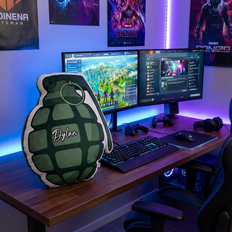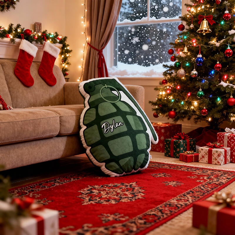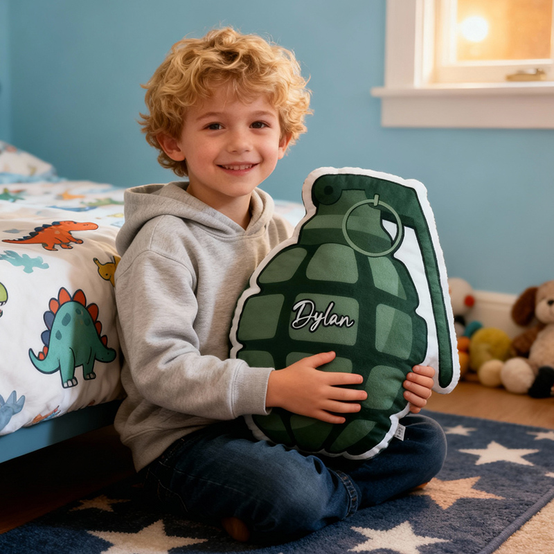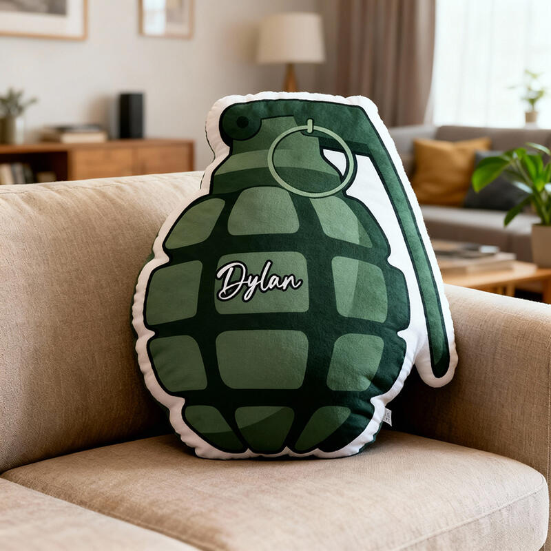 Personalized Name Pillow with Grenade Design Cool Gift for Boys