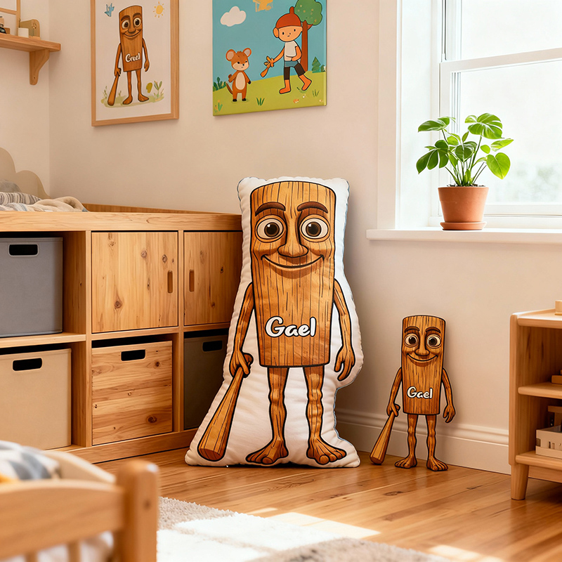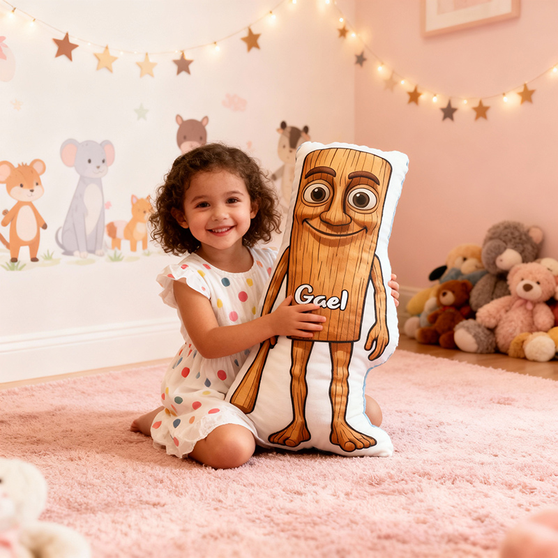 Personalized Name Pillow with Wooden Figure Pattern Great Gift for Children